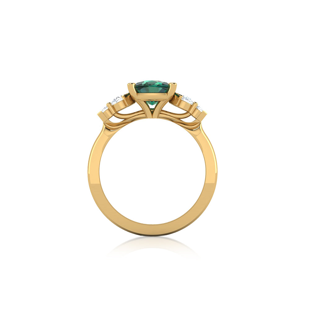 This Violet Gray ring really highlights your central stone as it tapers out towards the Diamonds as they contrast in shape and decrease in size. This design will work beautifully with all Gemstone / Diamond shapes. It is also stackable with straight or curved bands.