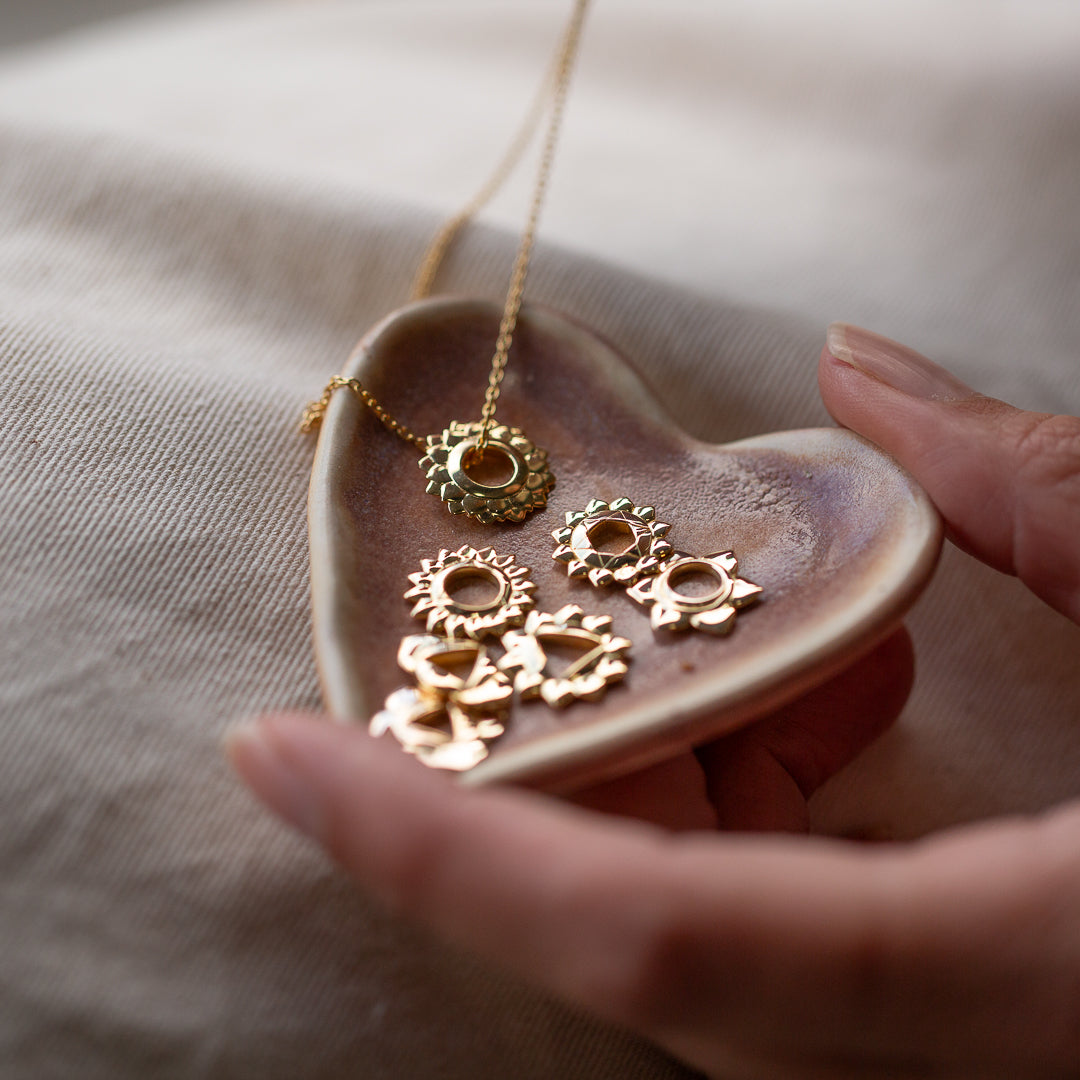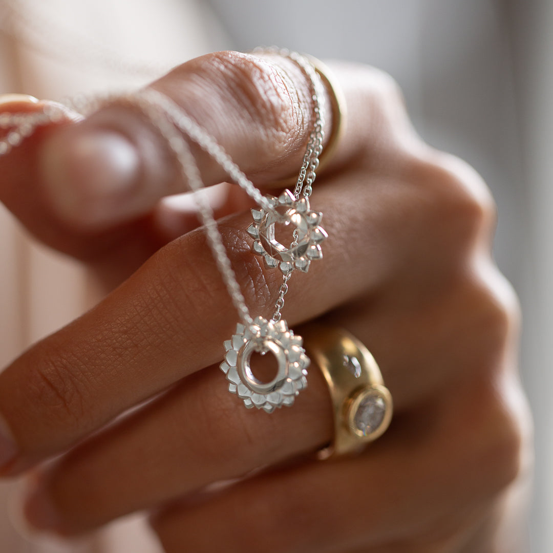 The Chakra charms vary slightly depending on the design you choose, but each one falls within the 10–12mm range — a delicate size, perfect for everyday wear.