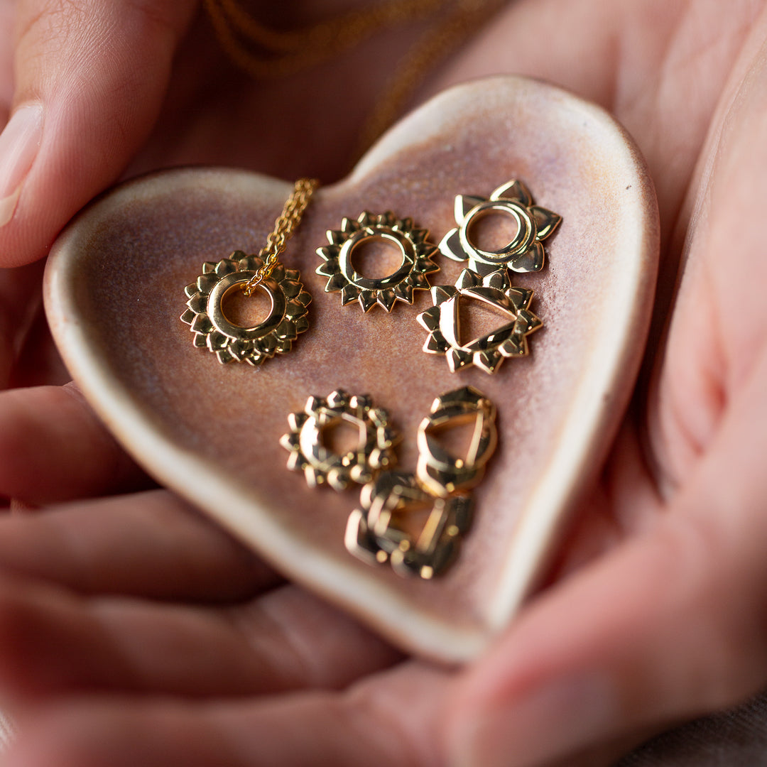 Our Chakra necklaces and charms are available in your choice of solid 9kt Yellow Gold (not plated) or 925 Sterling Silver.