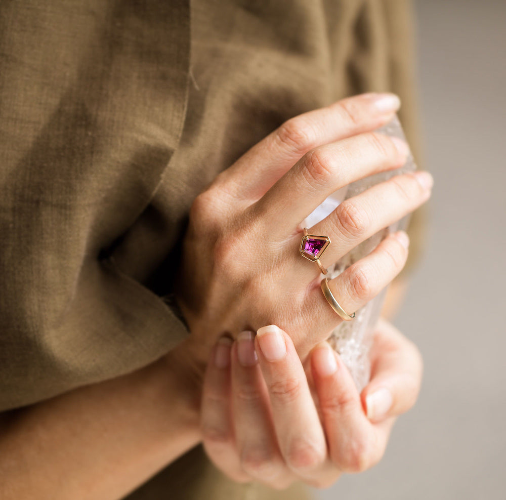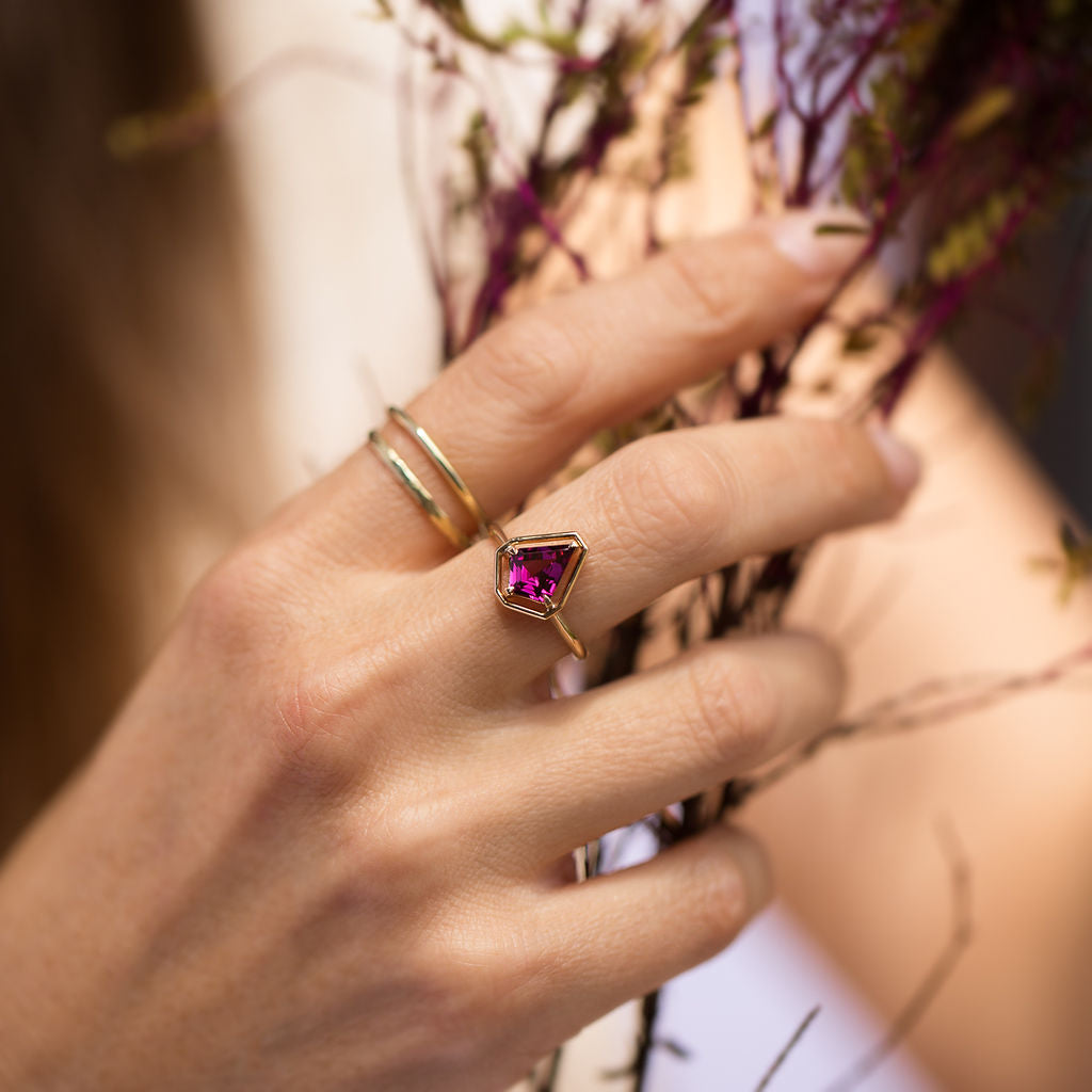 Named after the Fuchsia Magellanica flower, originally named during the 16th century by German botanist Leonhart Fuchs. It is a very distinct and exotic looking flower. Folklore tales share that when gifted this flower (and now ring) it symbolises the deep trust that the giver feels towards the receiver.