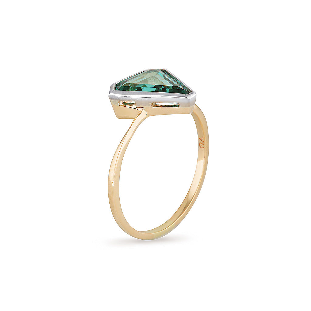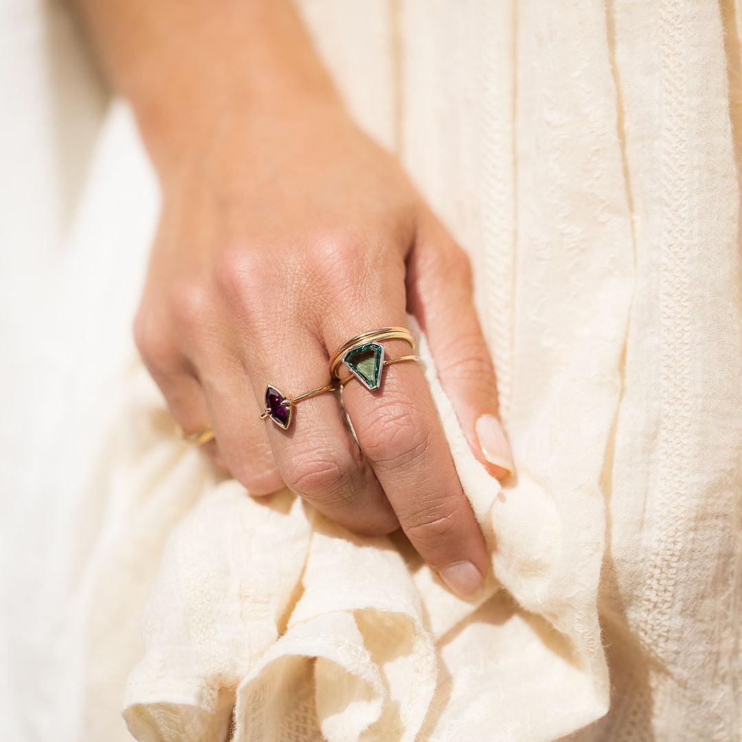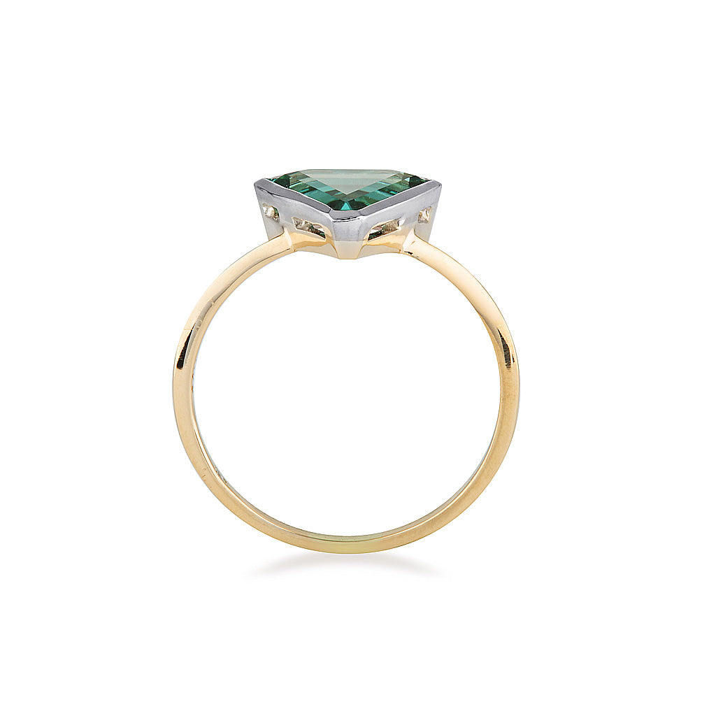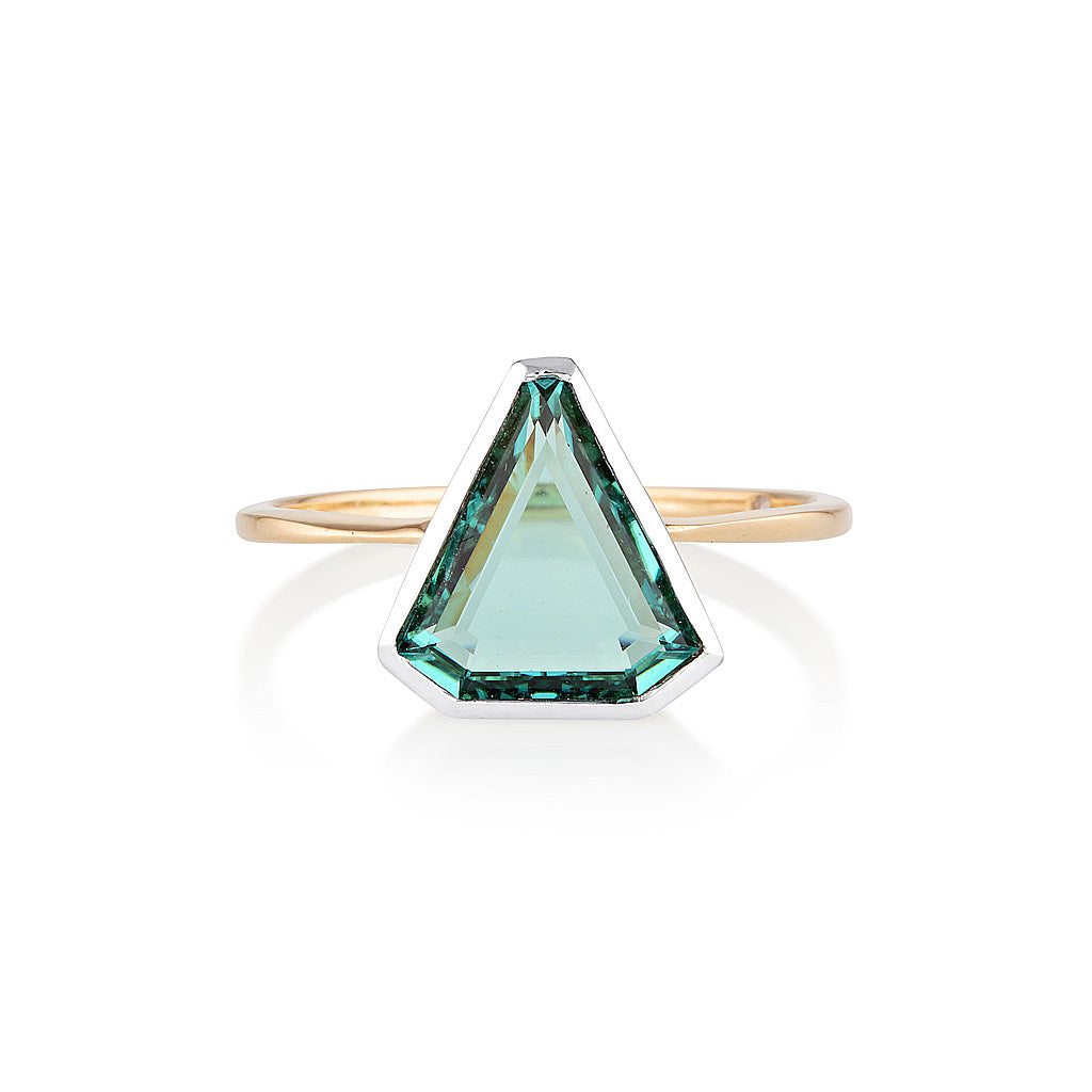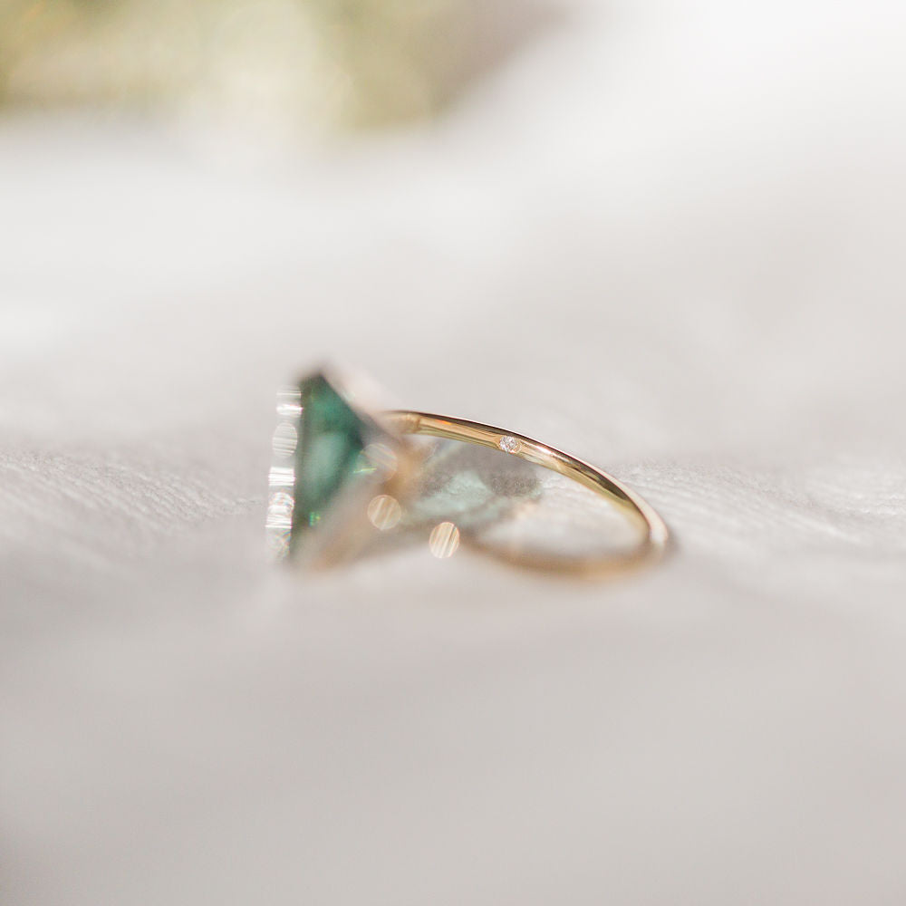 Estella (this Tourmaline ring) features a vibrant kite shaped Lagoon Tourmaline that sits intentionally low to the hand and is eye-clean so that you can gaze all the way through her. It is then accompanied by a hidden brilliant cut Diamond on the inside of the band... like a little star or personalised reminder just for you.