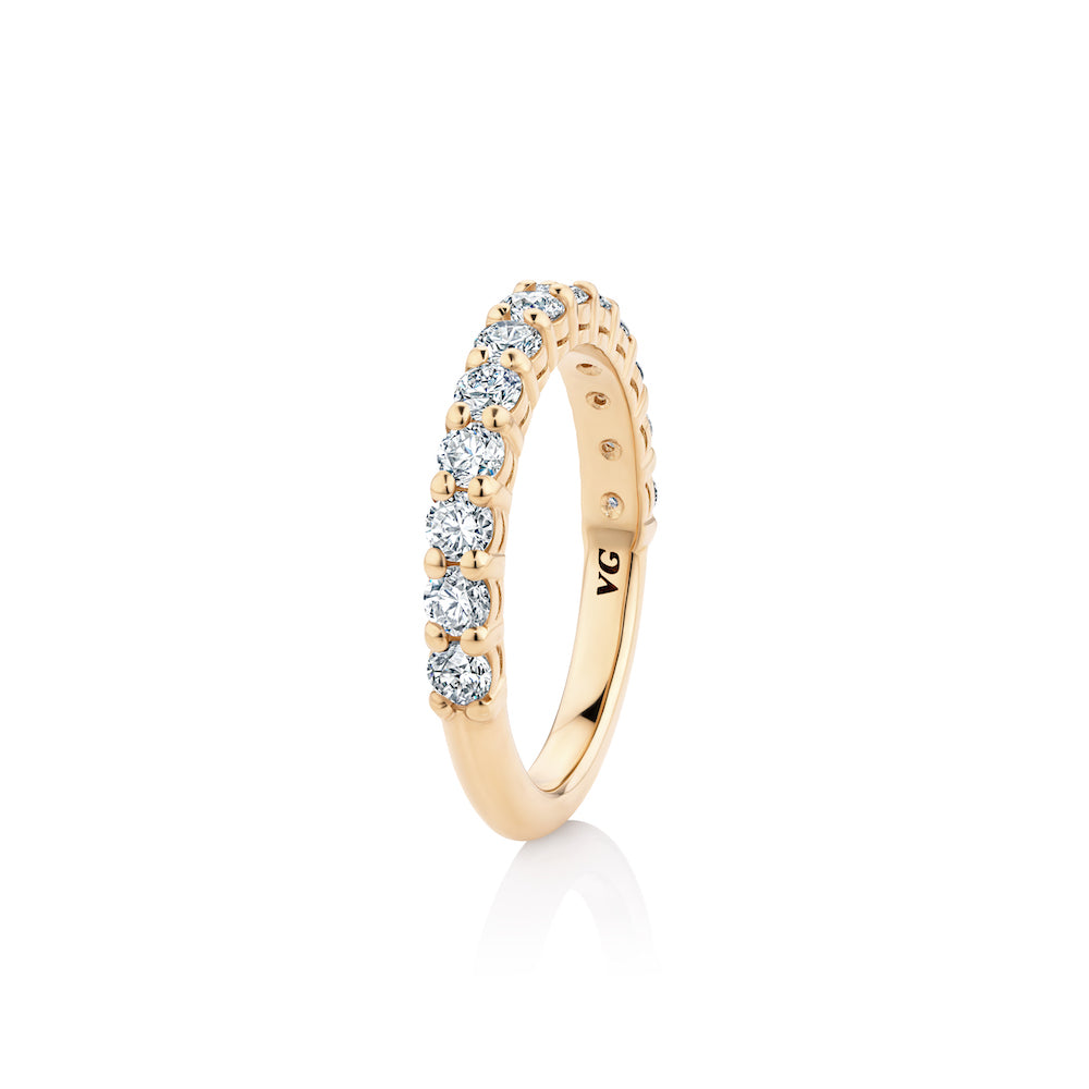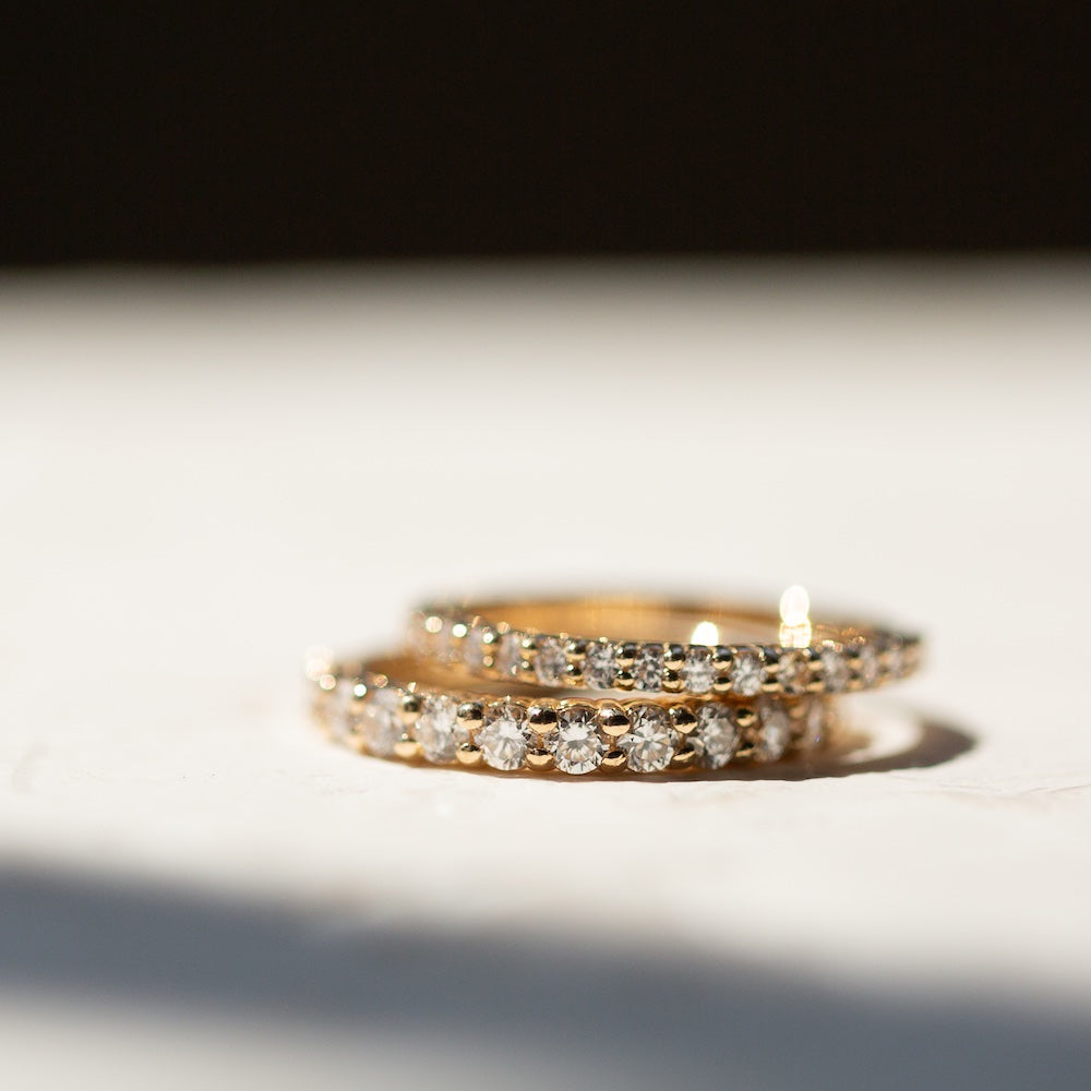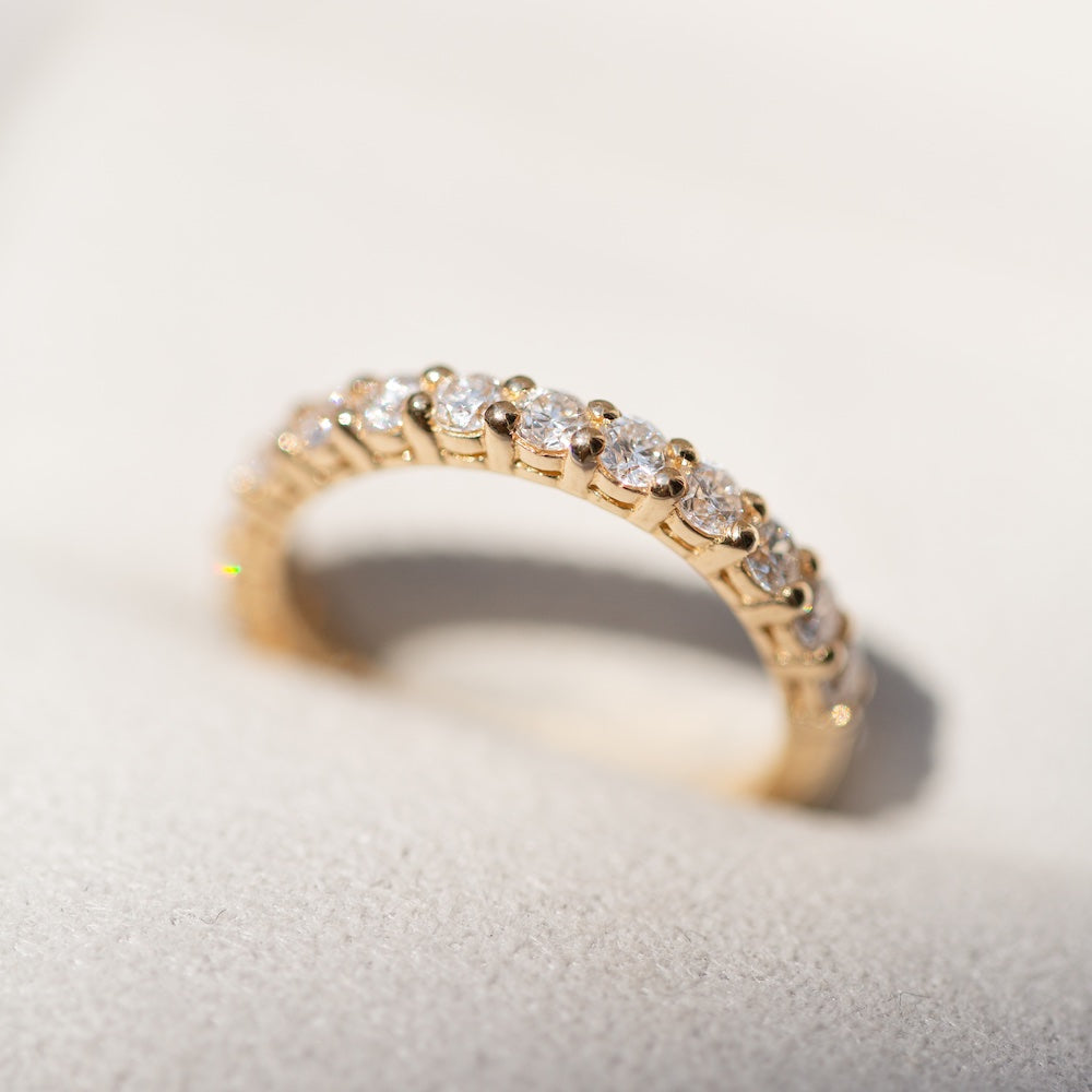 This Violet Gray half eternity band showcases 2.5mm White Diamonds, carefully pavé set into our signature angular band. Symbolising love and commitment, this ring is perfect for celebrating your special moments. Whether worn alone or stacked with other rings, it adds a touch of refinement to any combination.