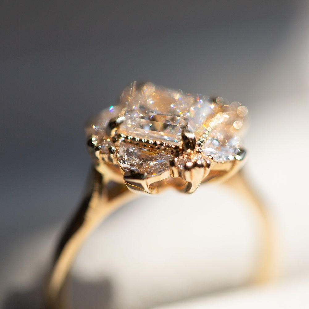 Helene is an Art Deco inspired ring designed for the woman who appreciates vintage charm infused with bold, artistic flair. Featuring striking geometric shapes in the Diamonds and a high-polish finish in the Australian Yellow Gold setting, it effortlessly balances luxurious materials with intricate, deeply considered details.