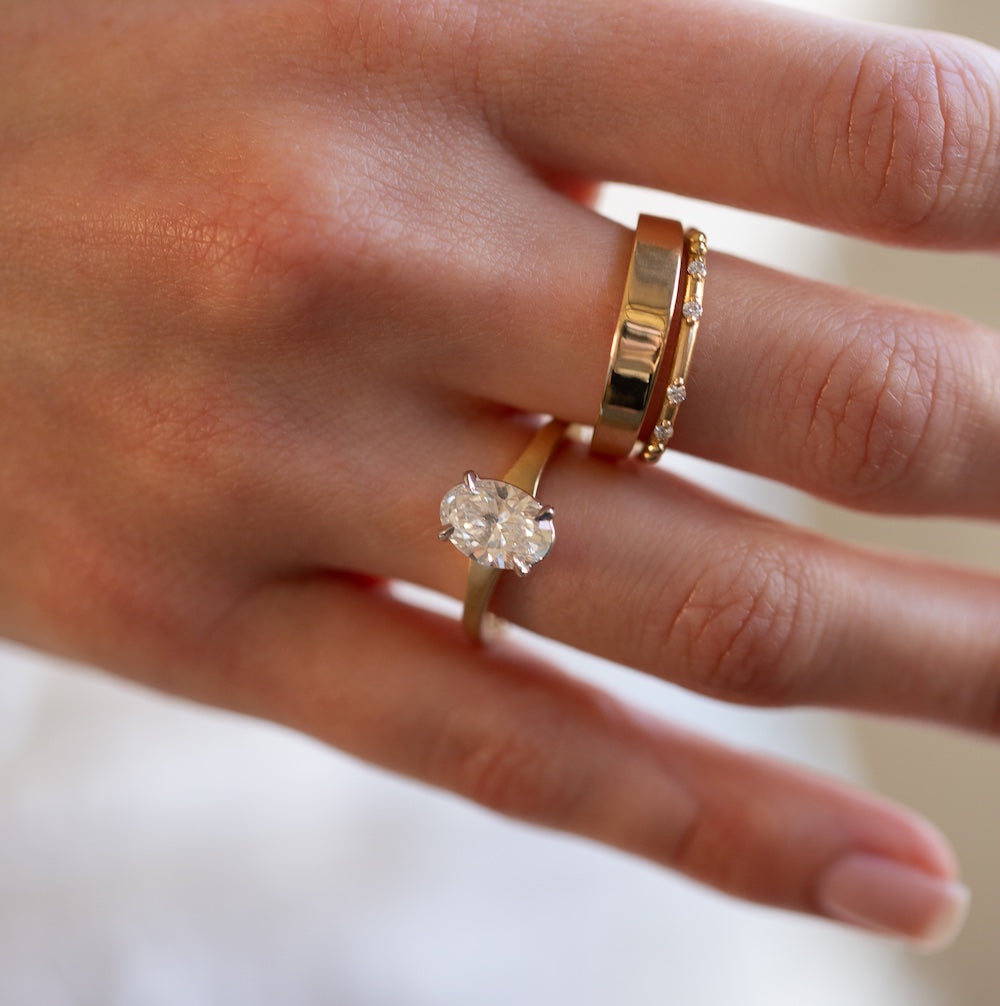 This ring combines luxury with modesty; it feels extremely high in quality yet simultaneously down-to-earth and organic. The oval cut compliments all hand shapes and the elongated shape can even make the Diamond appear more brilliant and large (in comparison to other cuts).
