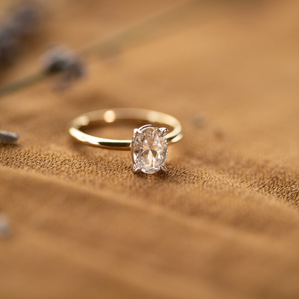 The Violet Gray Julianna Ring is currently the most loved Solitaire Diamond Engagement ring in our Ceremonial collection. Your Diamond will be secured in a 4 claw basket setting and low into one of our most favourite, simplistic bands (as pictured).