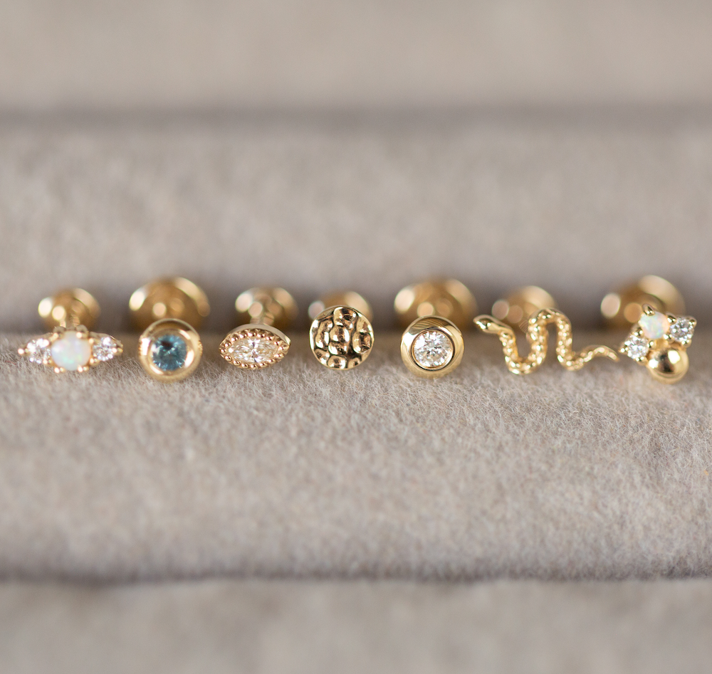 *Complimentary tapered piercing pole with your first piercing earring order. This does not pierce your ear, it simply makes it really easy to get your flat back studs into an existing hole. Read about how it works HERE