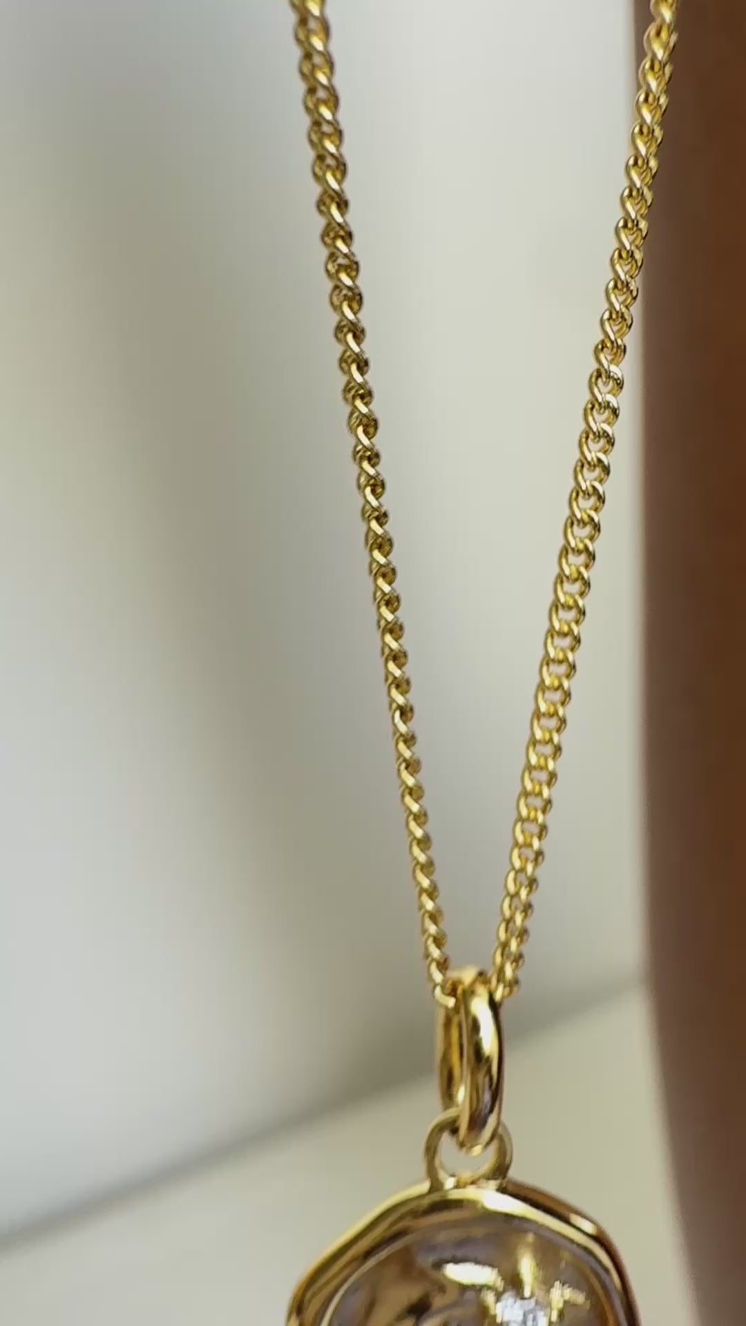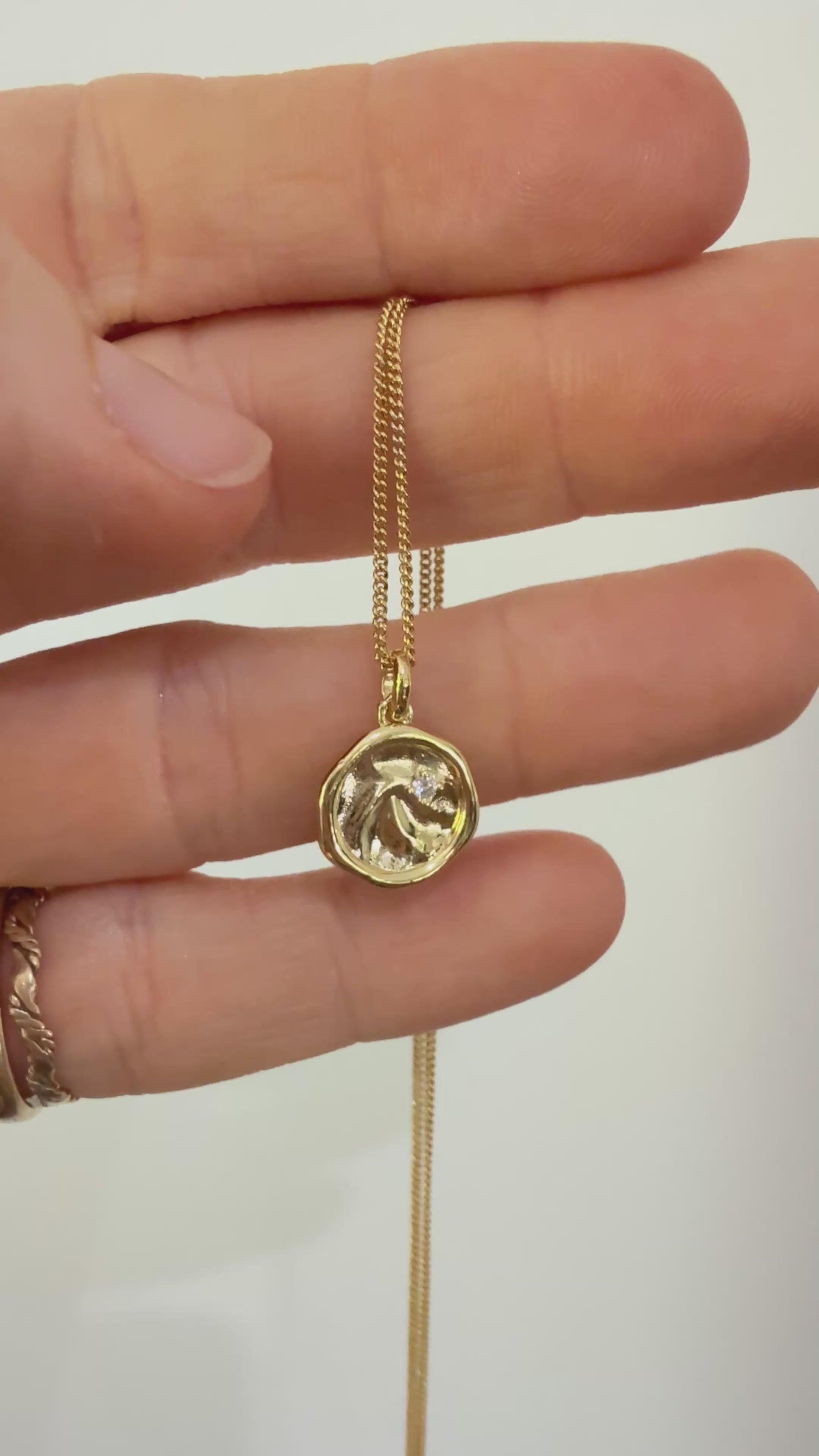 The Auryn Necklace - grounded and enduring - features a molten Gold pendant with organic curves, set with a single 1.8mm Lab-grown White Diamond. Crafted in 14k Gold Vermeil, 3 micron plating.