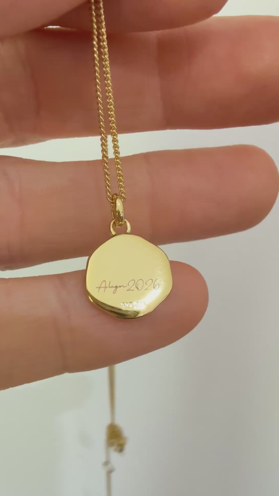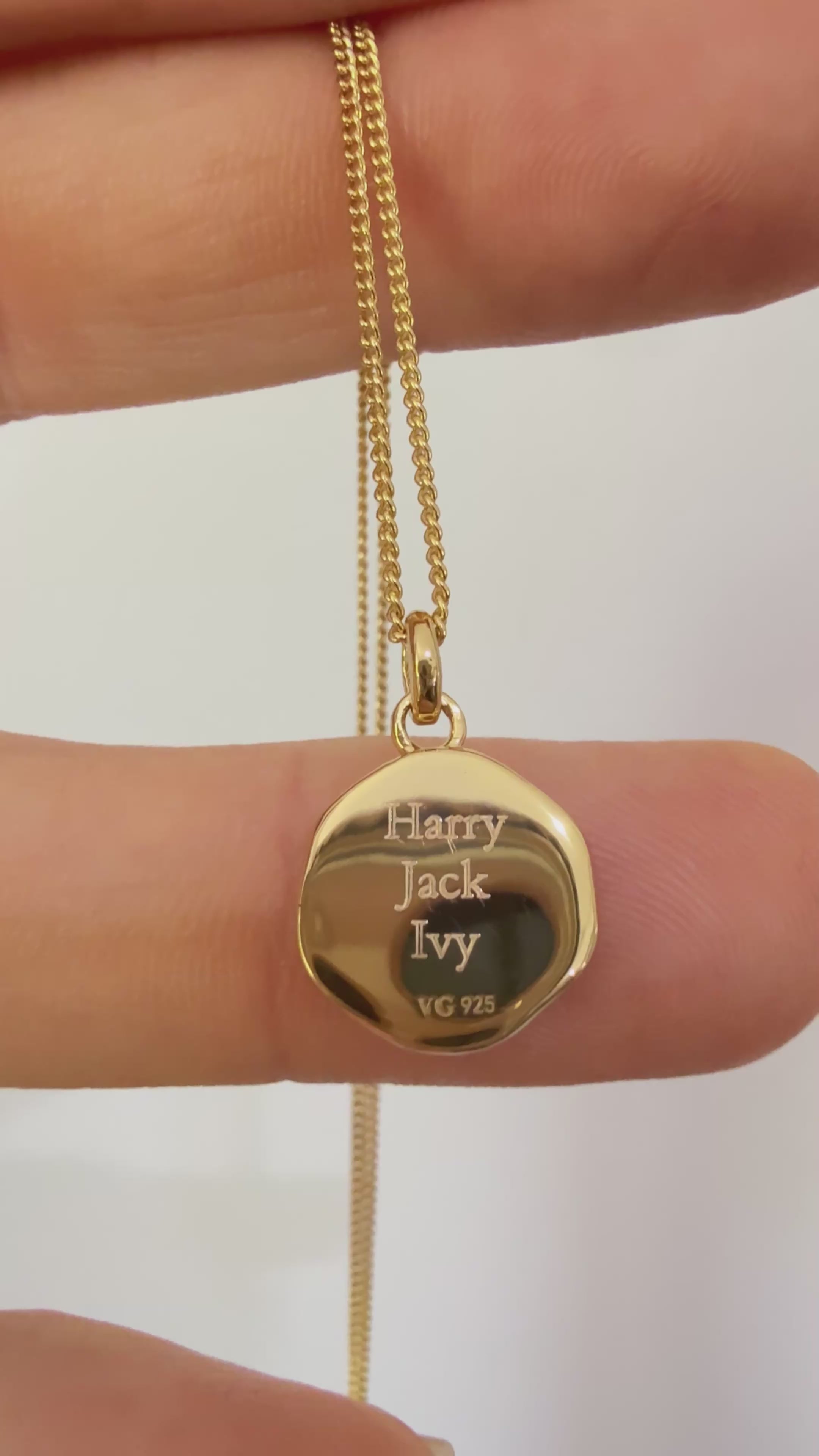 You can receive personalised engraving for FREE on this piece. This will appear on the back side of your pendant and will be engraved exactly as written.