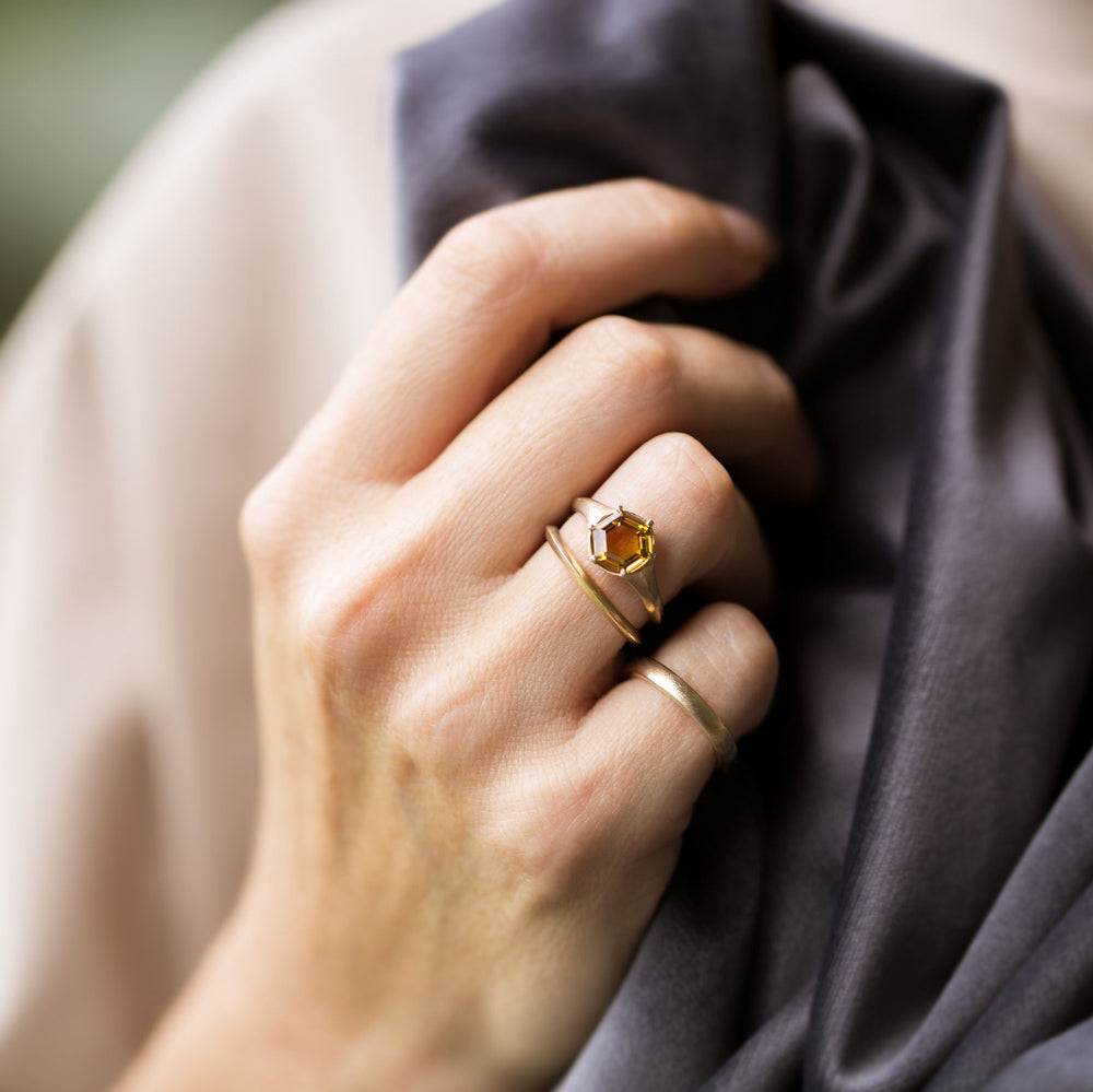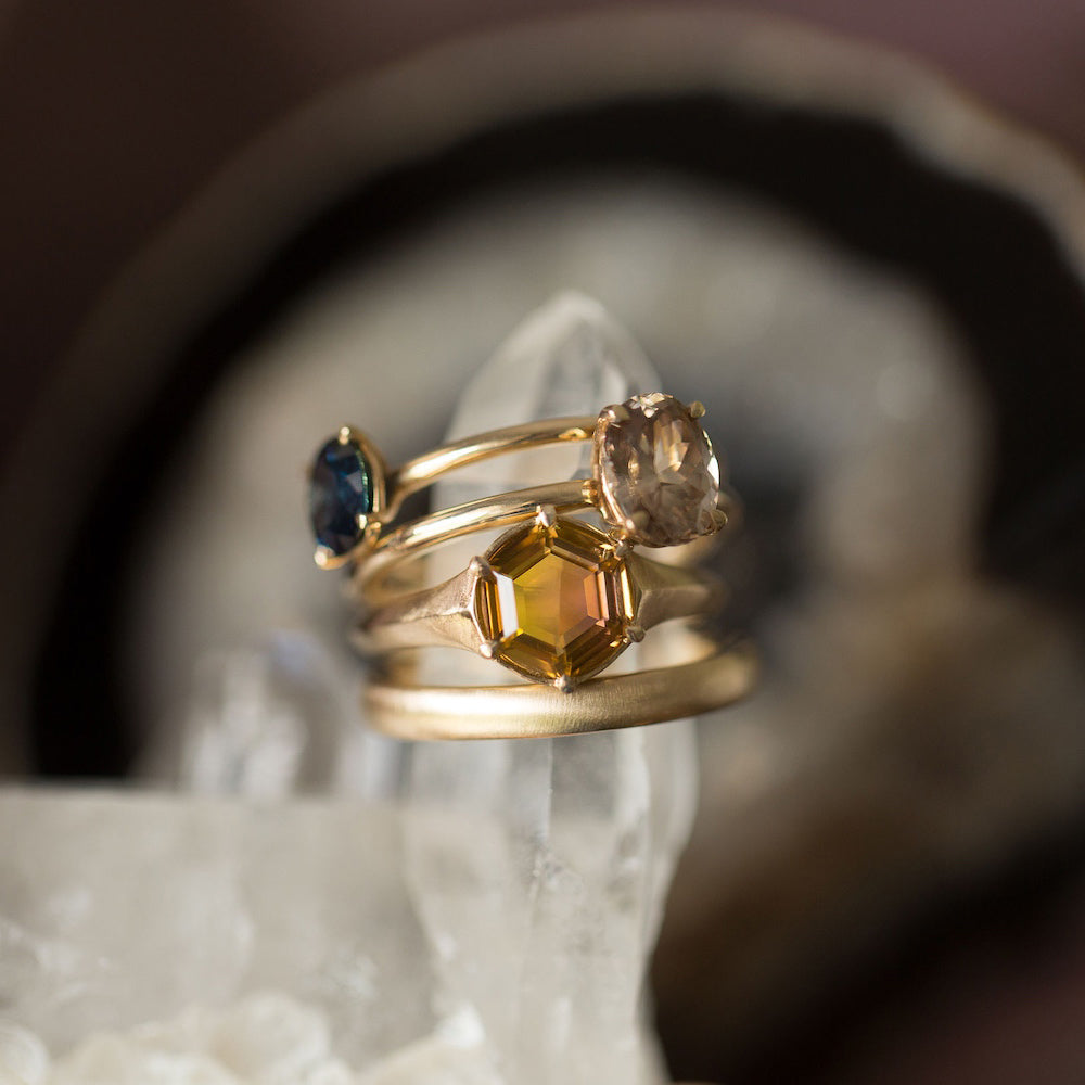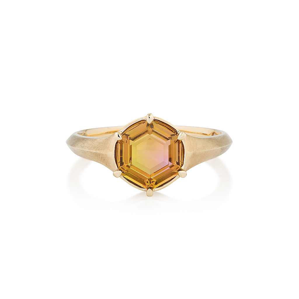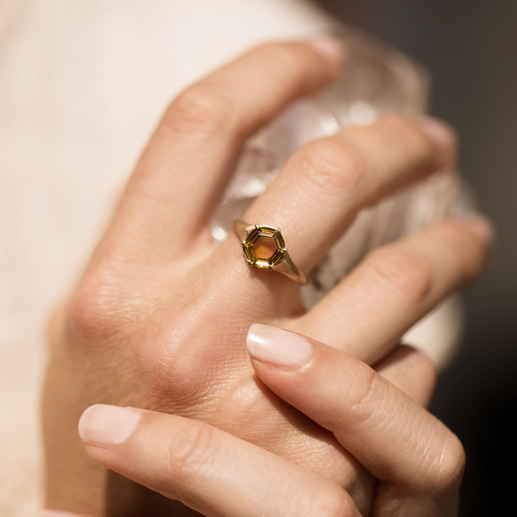 This ring is Autumn ~ featuring an Autumn Tourmaline with captivating flashes of yellow, orange and pink combined. She is a reminder of the seasons of life and the ease that comes when we welcome impermanence, mystery and embrace letting go.