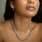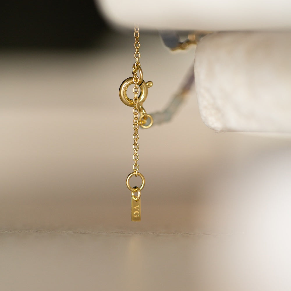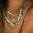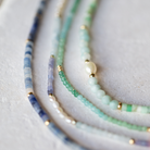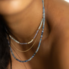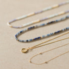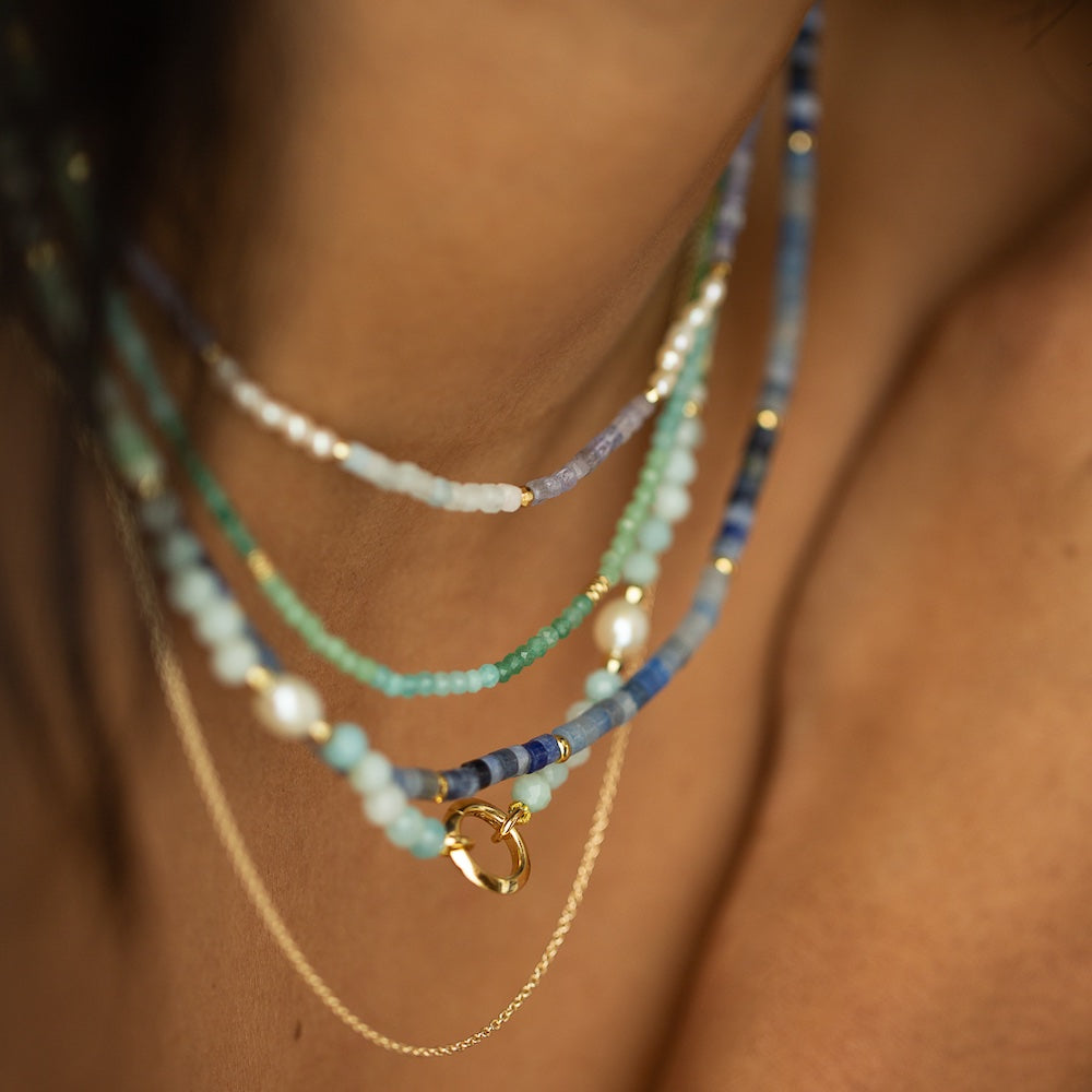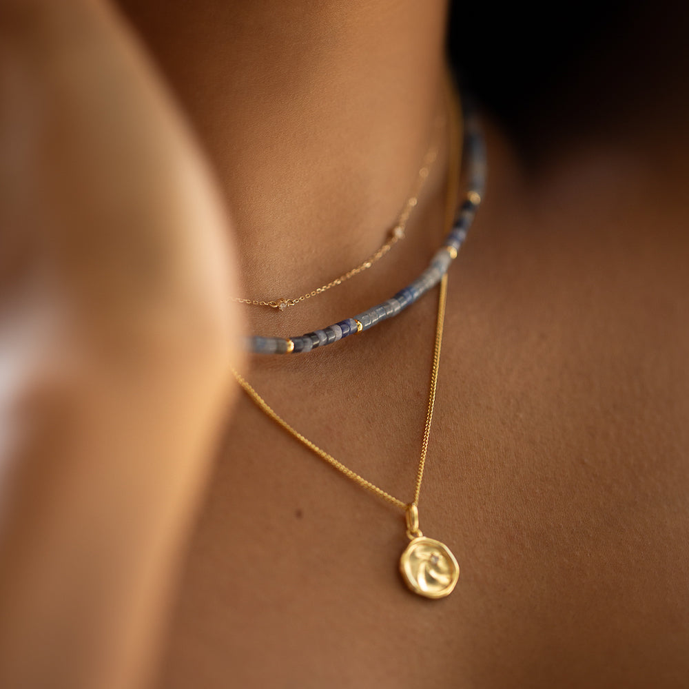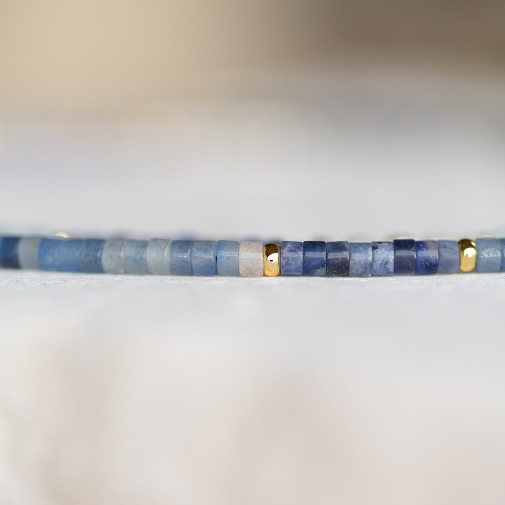 Our new Aven Beaded Necklace pairs Sodalite and Blue Aventurine Gemstones ~ naturally forming hues that shift between the colours of the ocean and sky. Finished with fine 14k Yellow Gold Vermeil detailing.