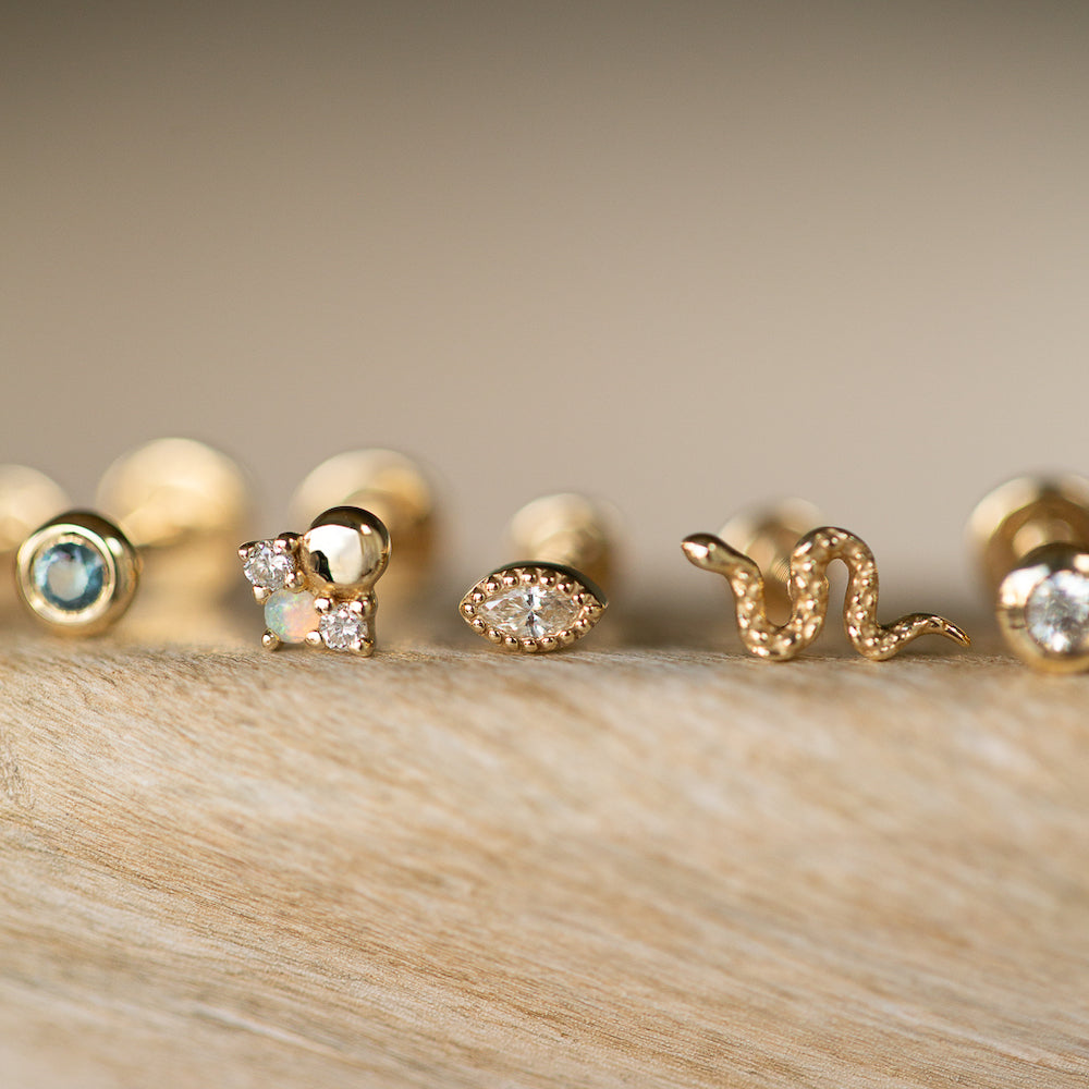 *Complimentary tapered piercing pole with your first piercing earring order. This does not pierce your ear, it simply makes it really easy to get your flat back studs into an existing hole. Read about how it works HERE