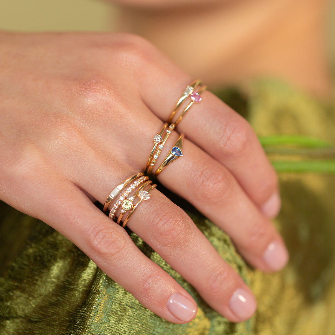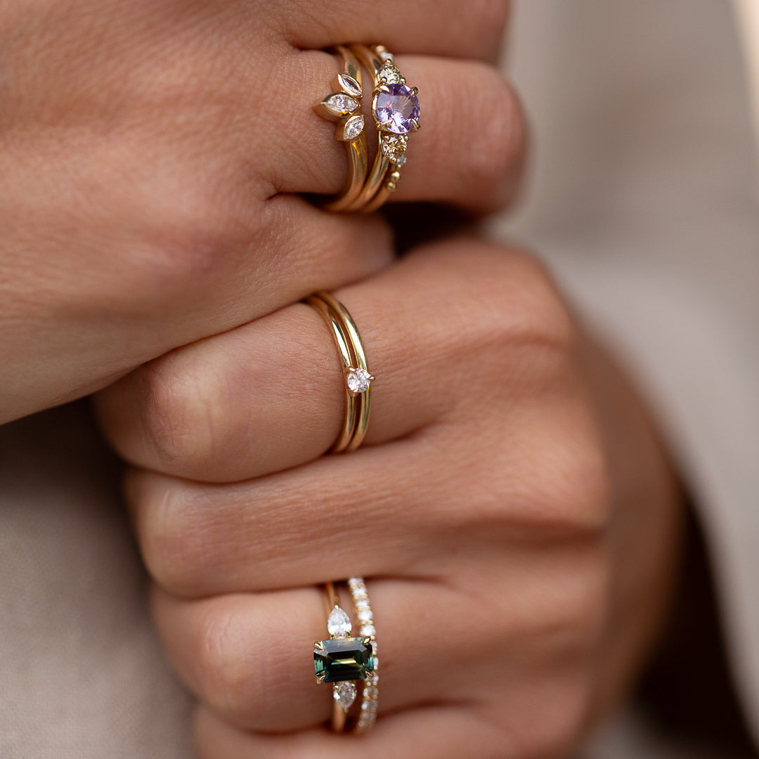Introducing our capsule collection of delicate promise rings ~ whether it be the perfect gift to yourself, the gift to your lover, friend, sister, mother. The ring intended to cement your love and place keep until you later commission a Bespoke Engagement ring together. Or perhaps it is a ring of celebration- babies born, birthdays, anniversaries, milestones met.