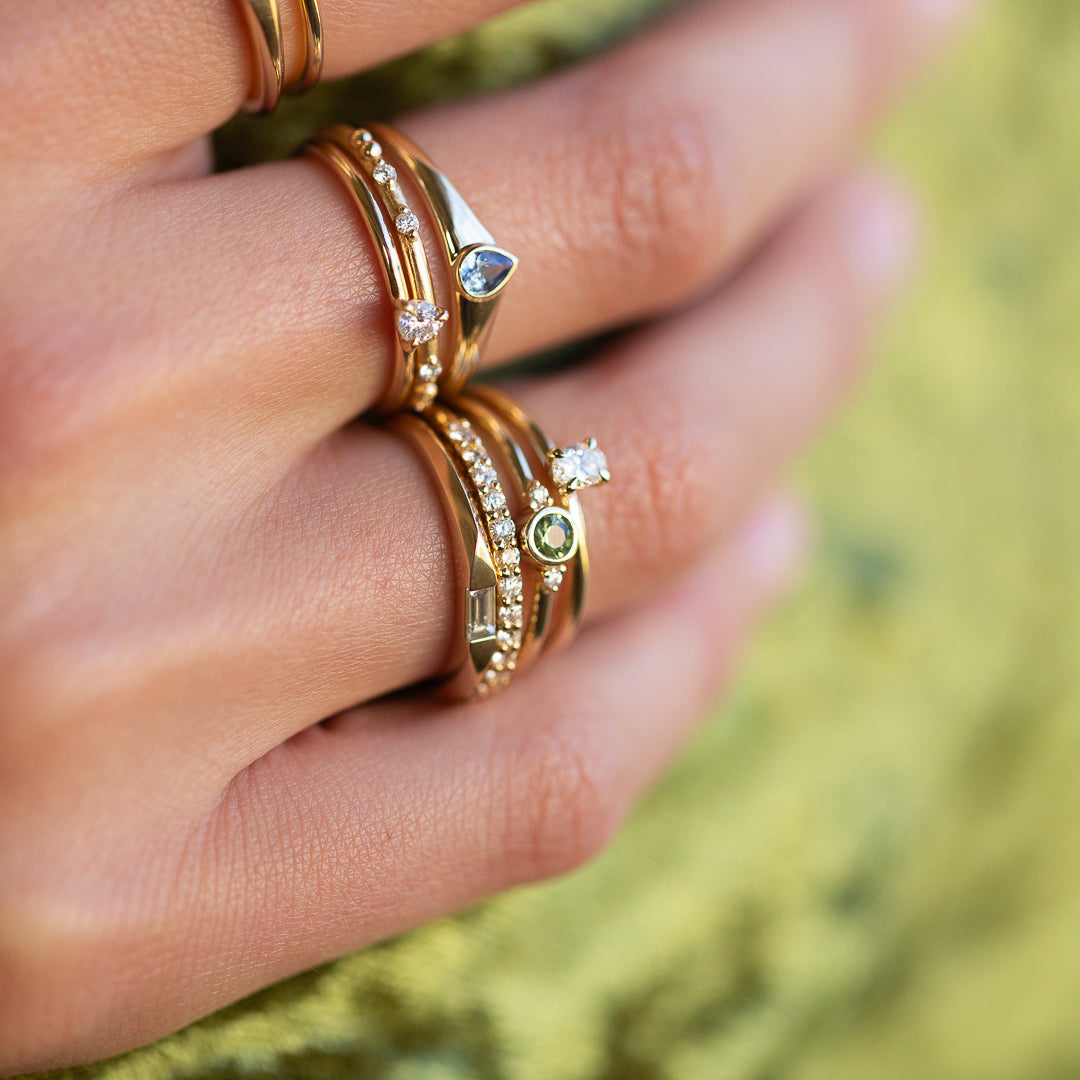 Introducing our capsule collection of delicate promise rings ~ whether it be the perfect gift to yourself, the gift to your lover, friend, sister, mother. The ring intended to cement your love and place keep until you later commission a Bespoke Engagement ring together. Or perhaps it is a ring of celebration- babies born, birthdays, anniversaries, milestones met.