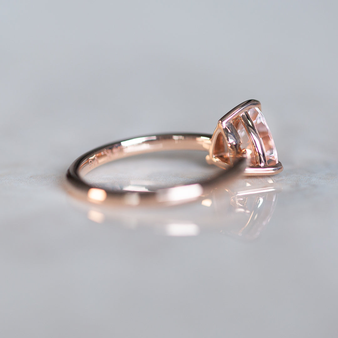 The Charlotte ring elegantly features a 1.18ct soft pink Morganite, set into a timeless and classic 14k Rose Gold setting.