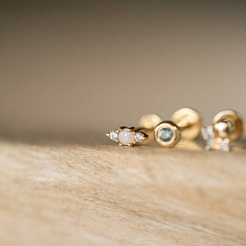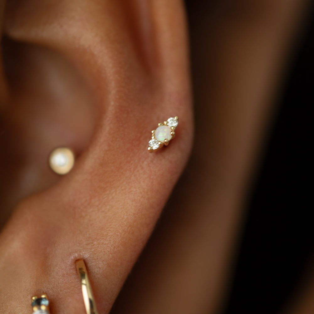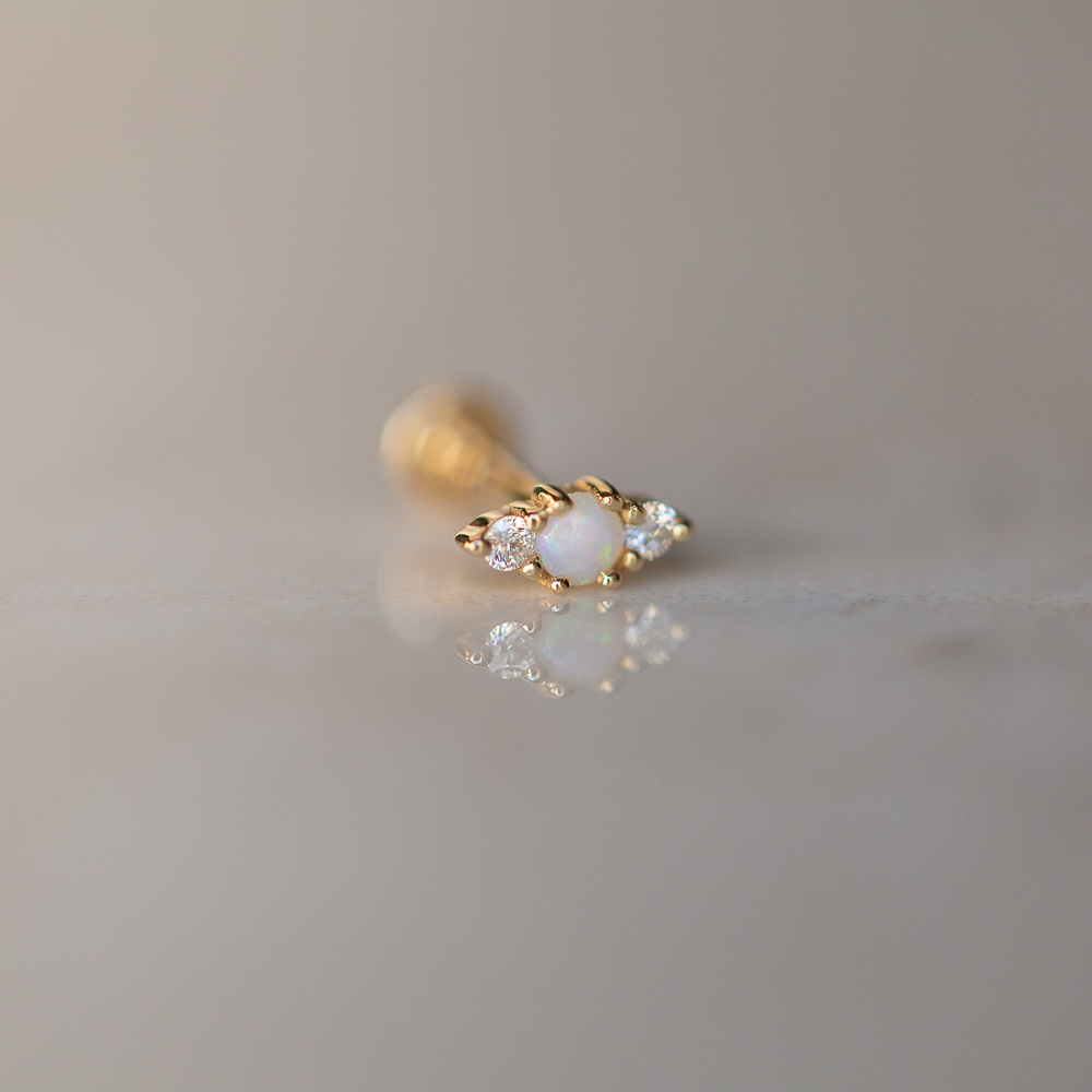 Solace Piercing Earring | 14k Gold Opal Stud