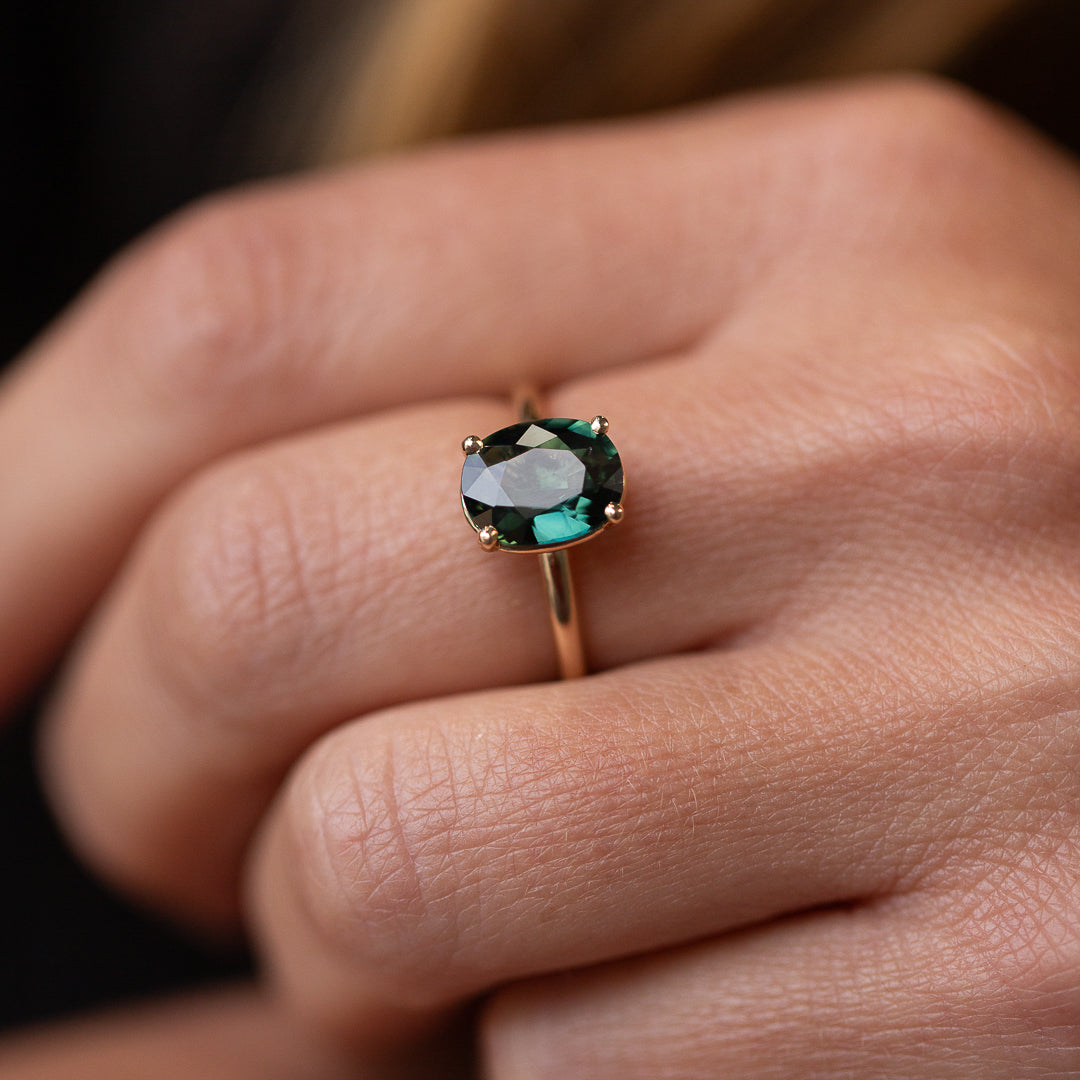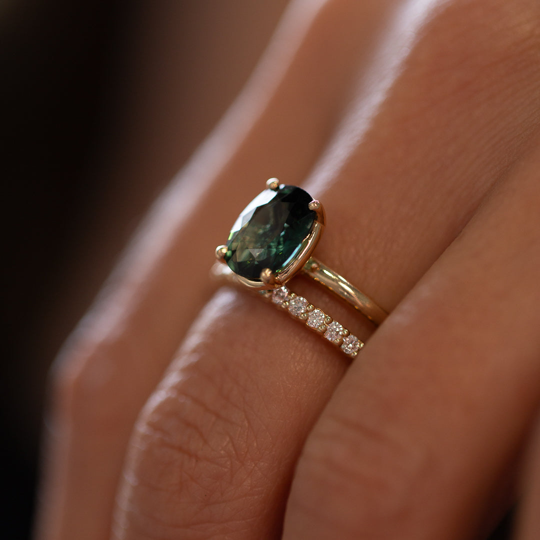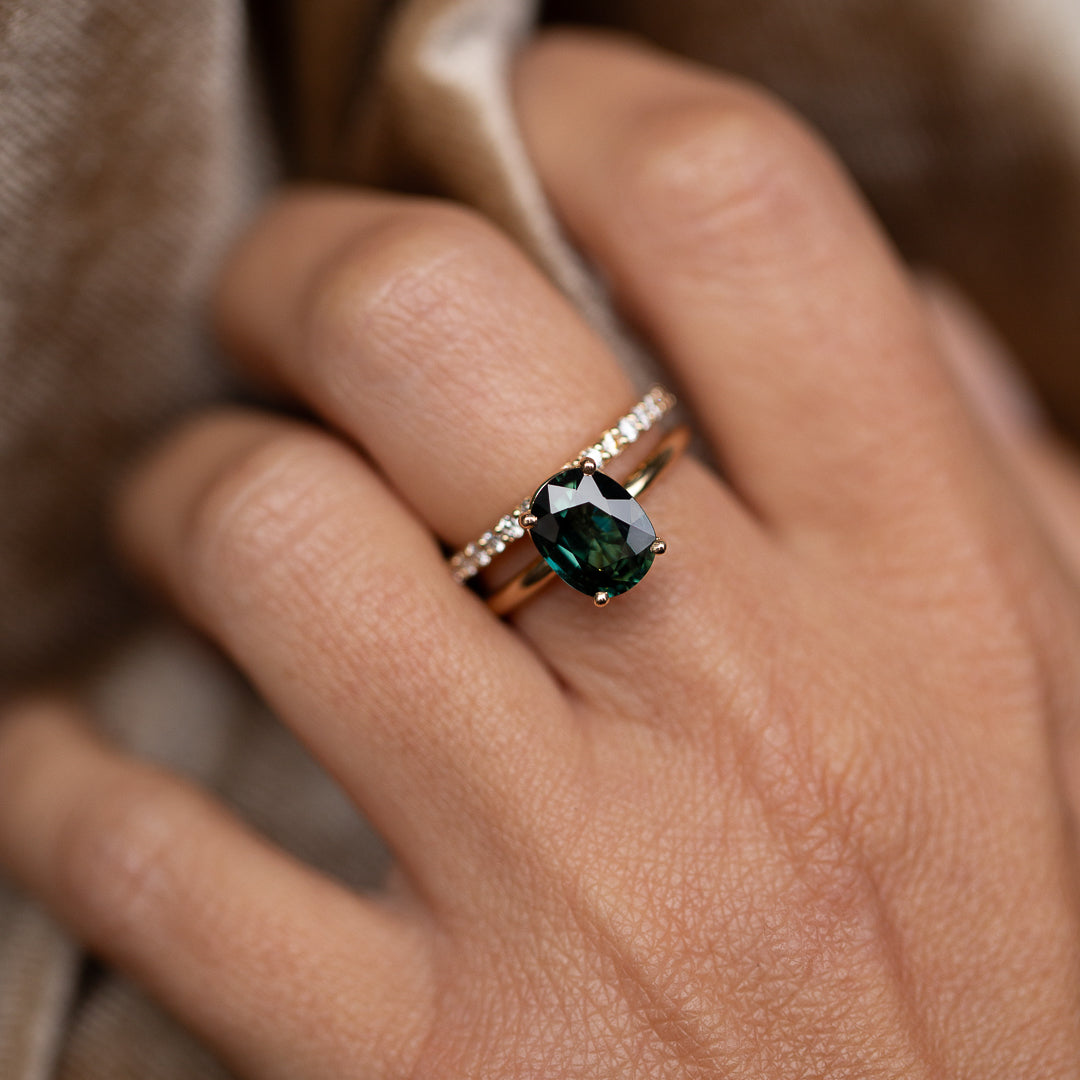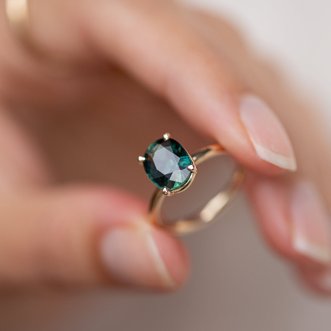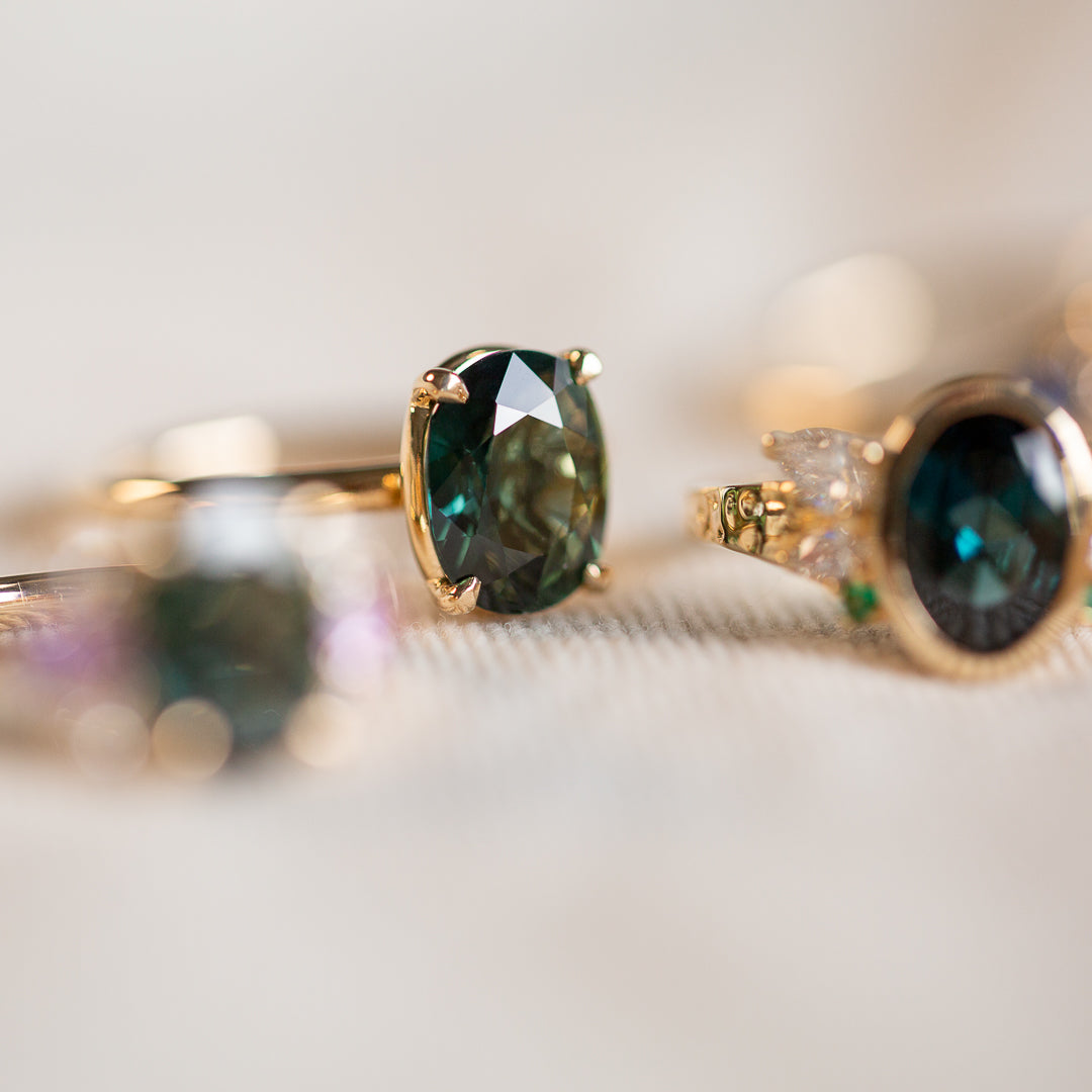 Meet Jedda – our signature solitaire, reimagined with a 2.77ct natural Australian Green Sapphire. This heirloom gem was mined and cut back in ’71/’72, then tucked away in a little black box in a safe for over 50 years. Until now...