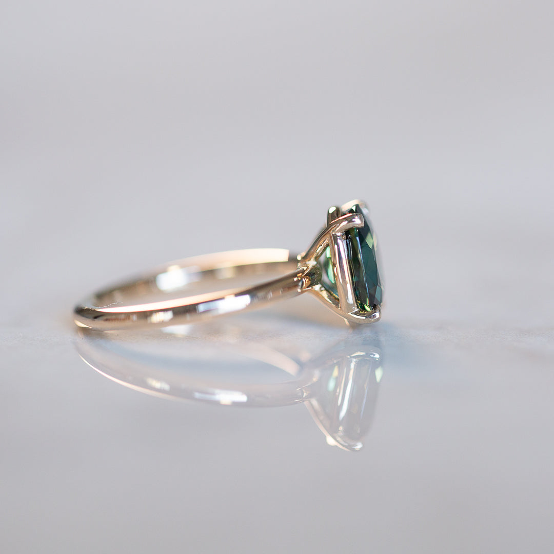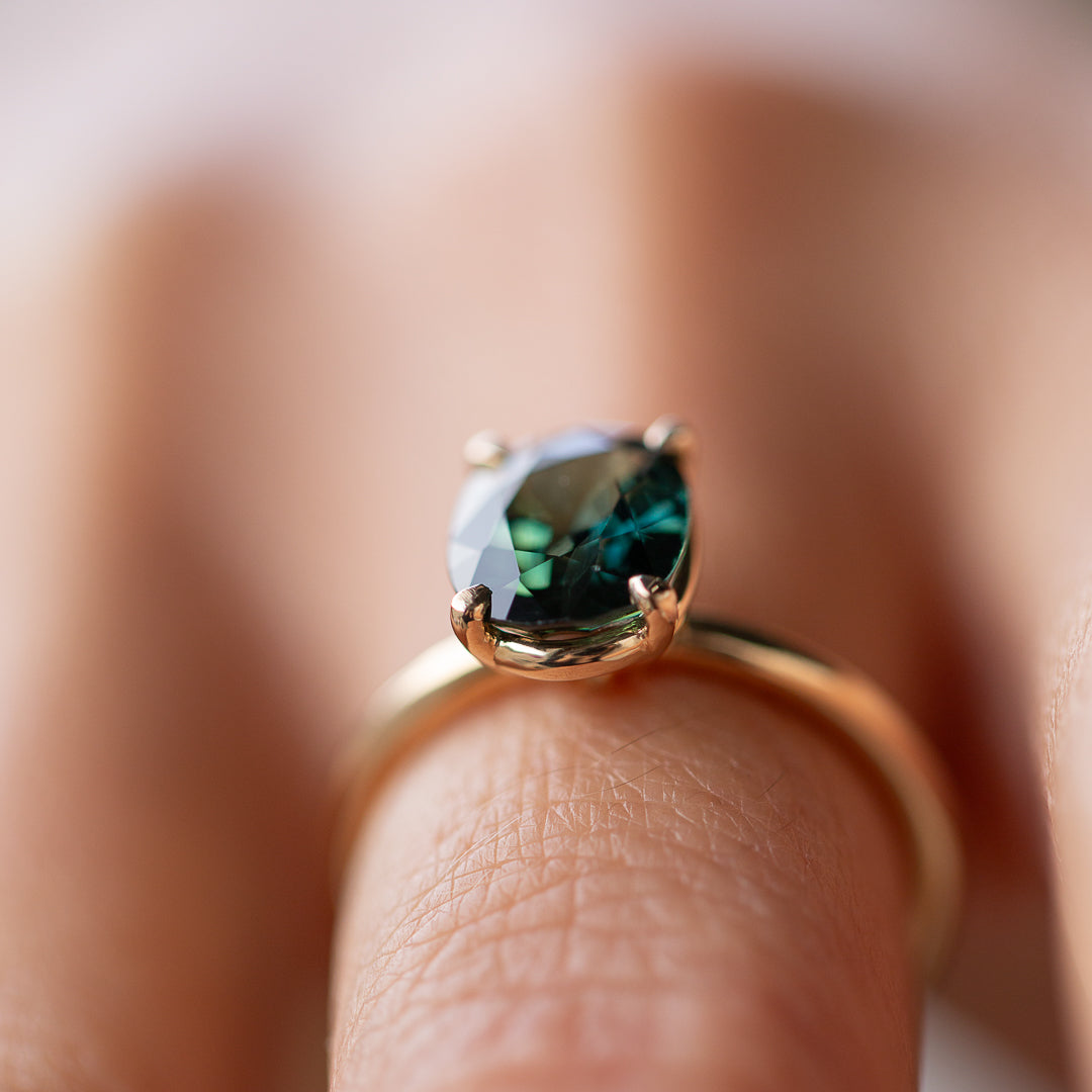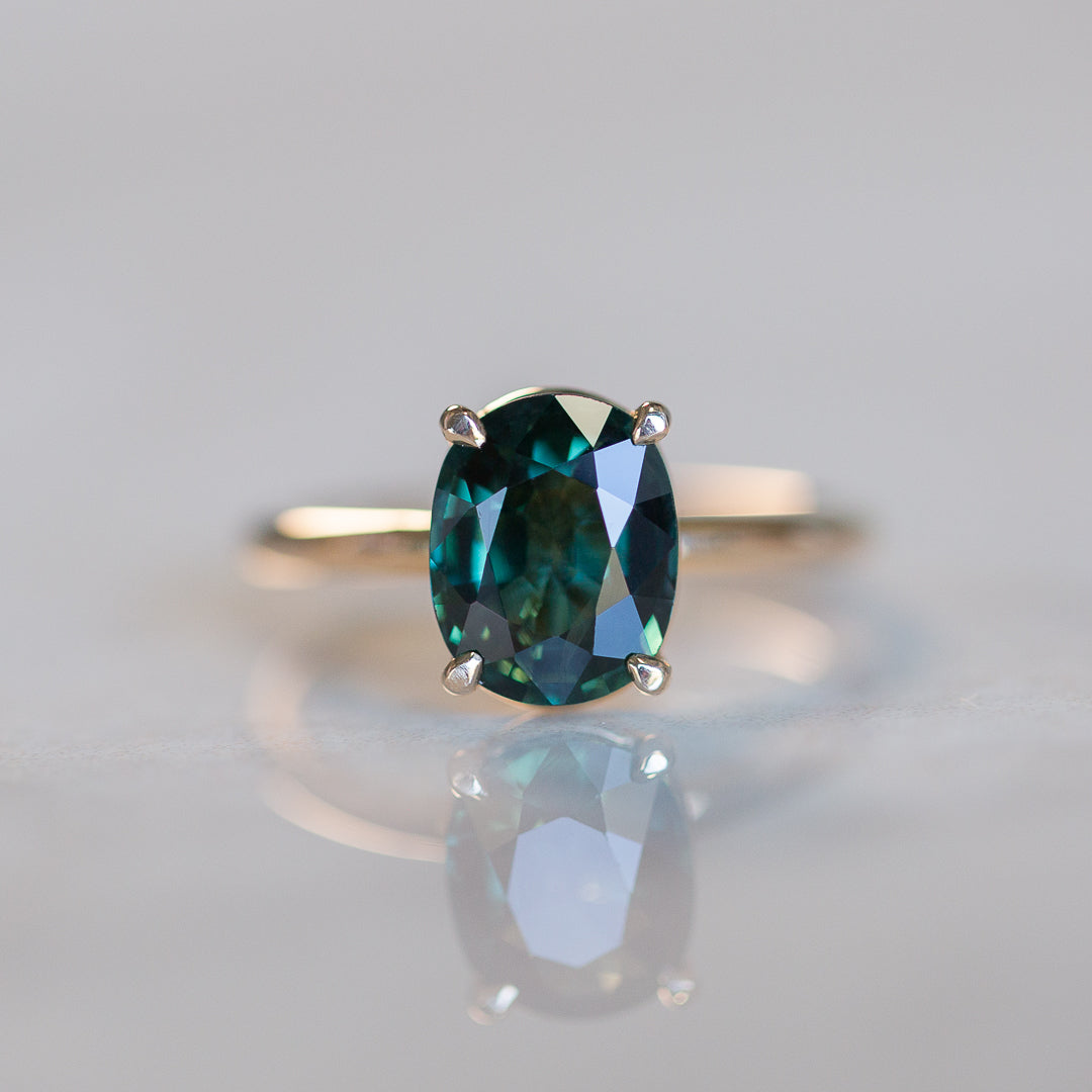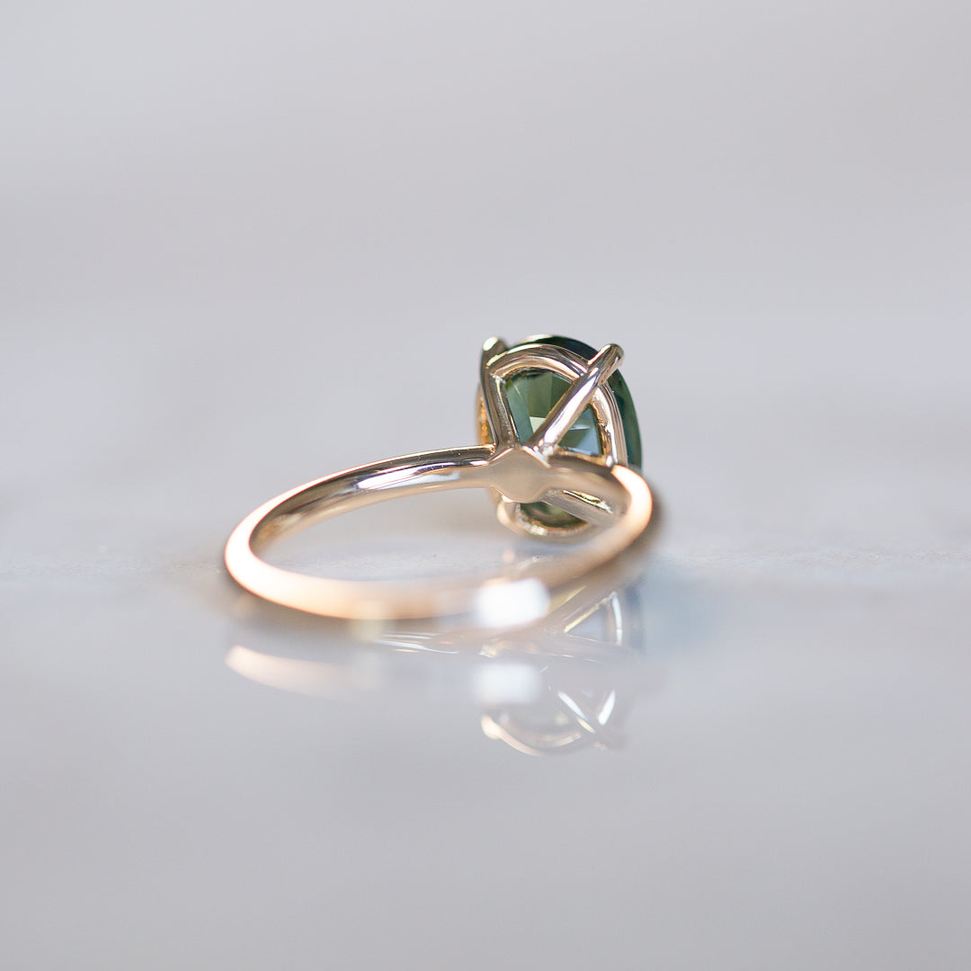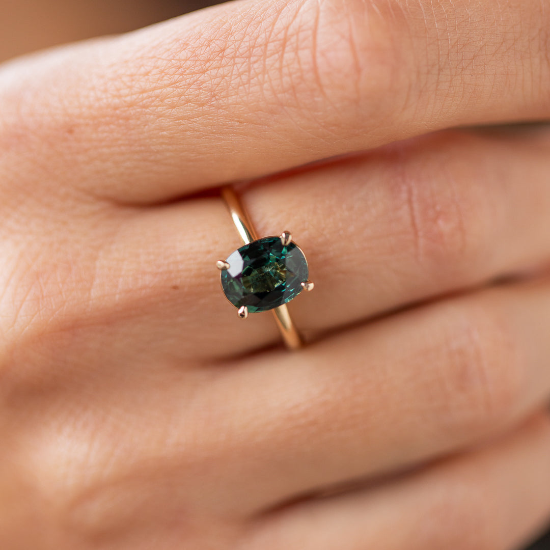 Meet Jedda – our signature solitaire, reimagined with a 2.77ct natural Australian Green Sapphire. This heirloom gem was mined and cut back in ’71/’72, then tucked away in a little black box in a safe for over 50 years. Until now...