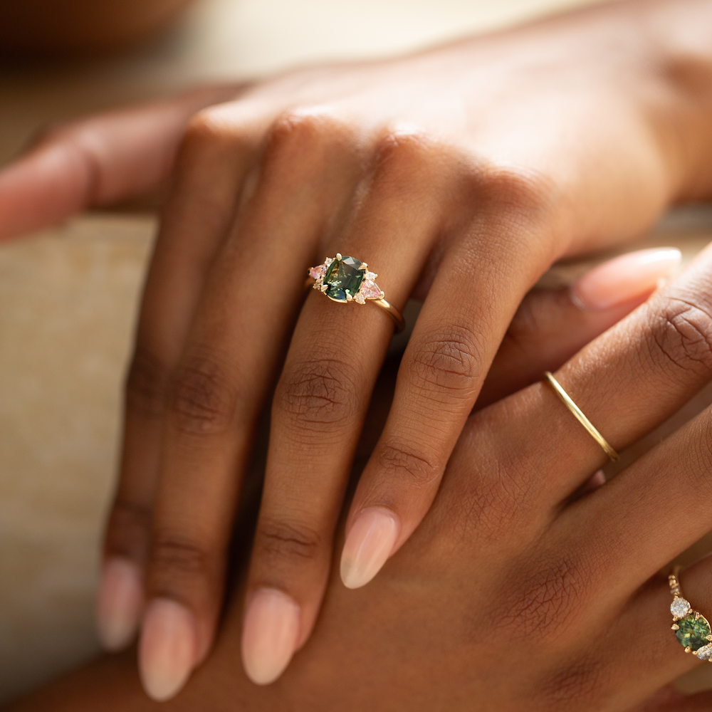 Gemstone settings appreciate a little extra care — avoid chemicals, lotions and impact, and store safely when not being worn.