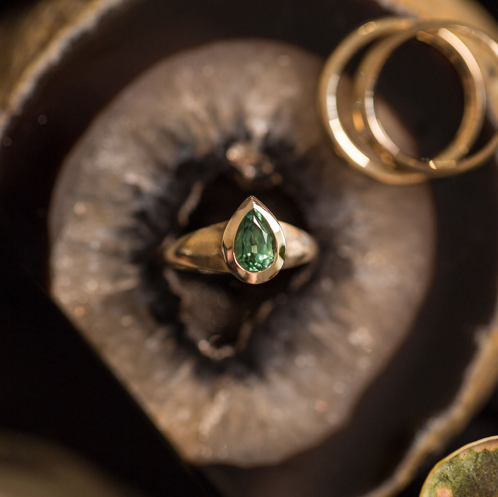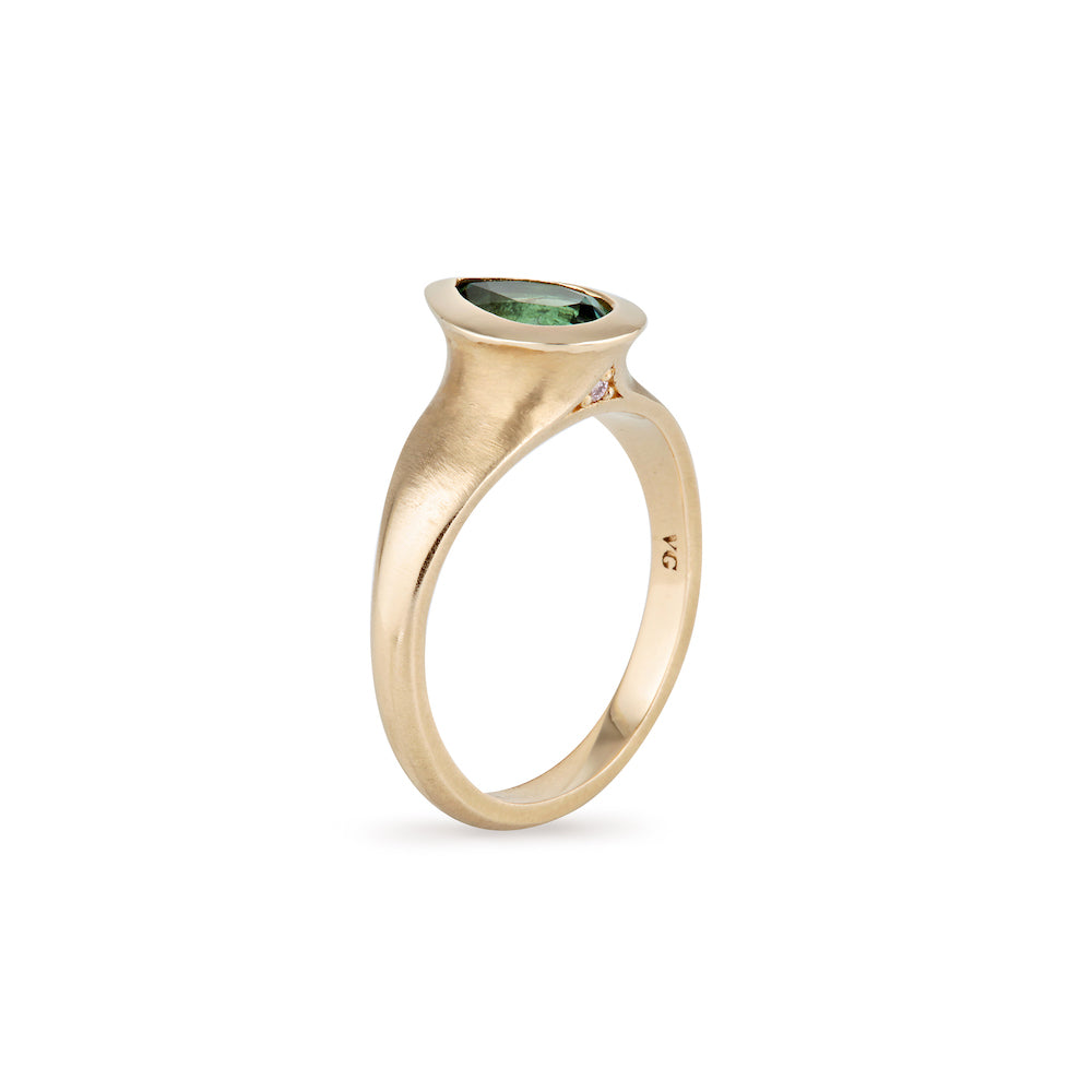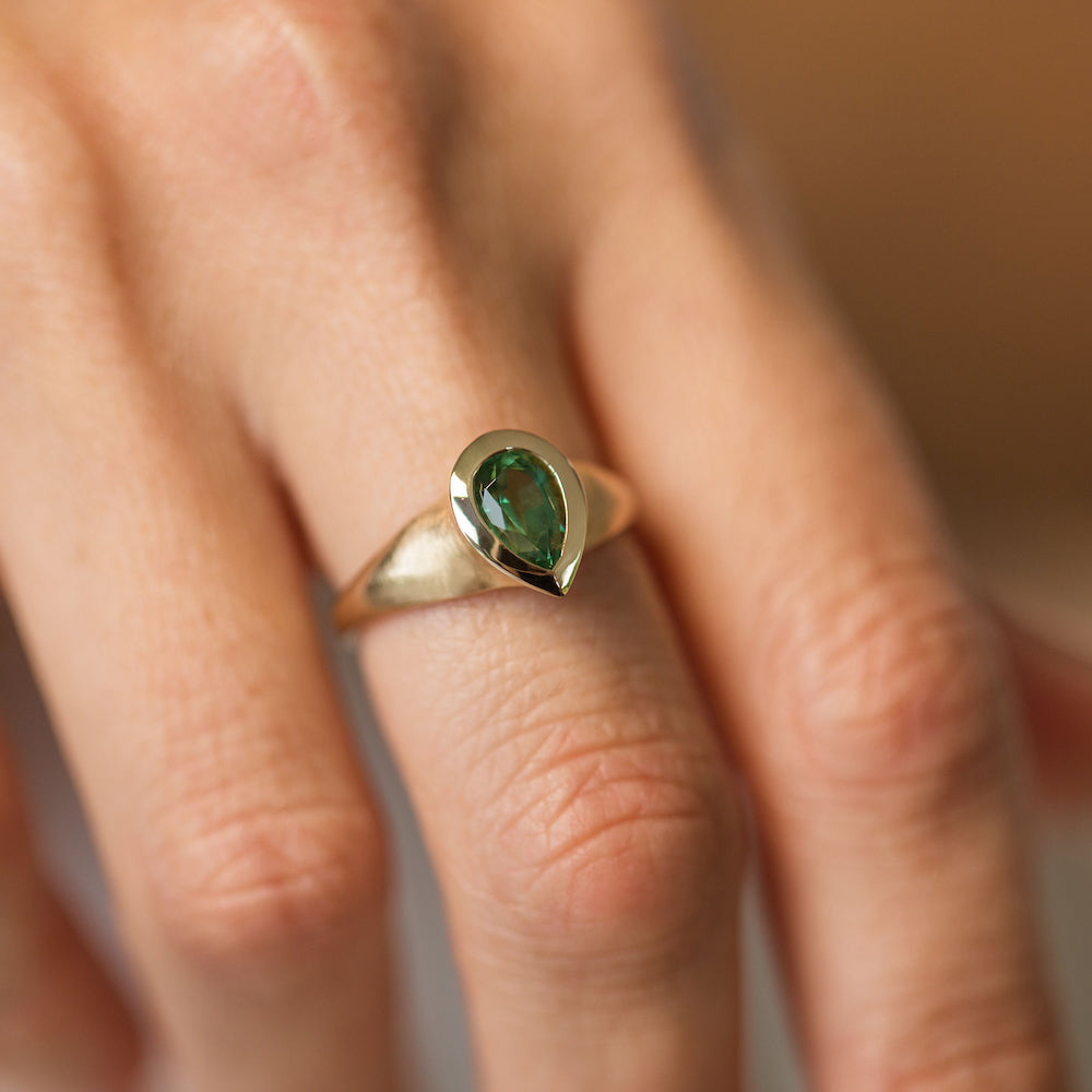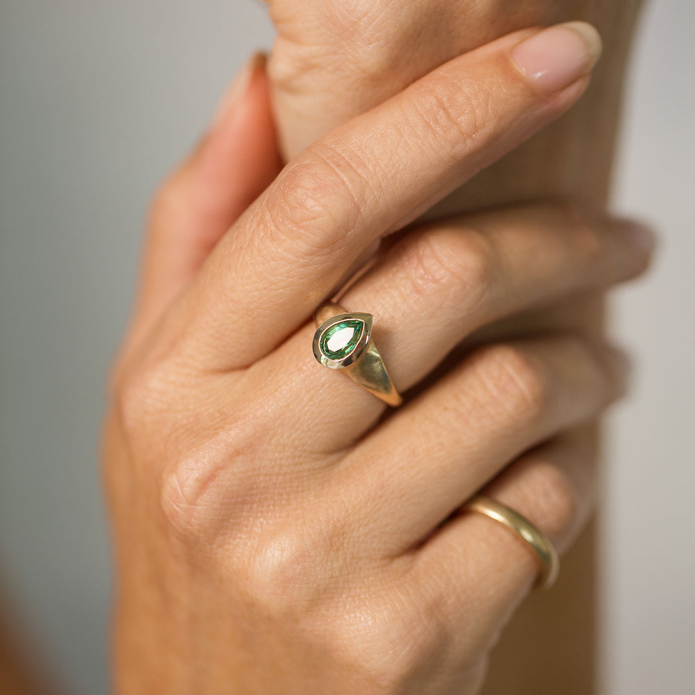 On the hand, the Emerson ring feels solid and strong. Wholesome, anchored and complete. She’s vibrant ~ a colour we personally refer to as ‘grounded green, or fresh spring leaves’.