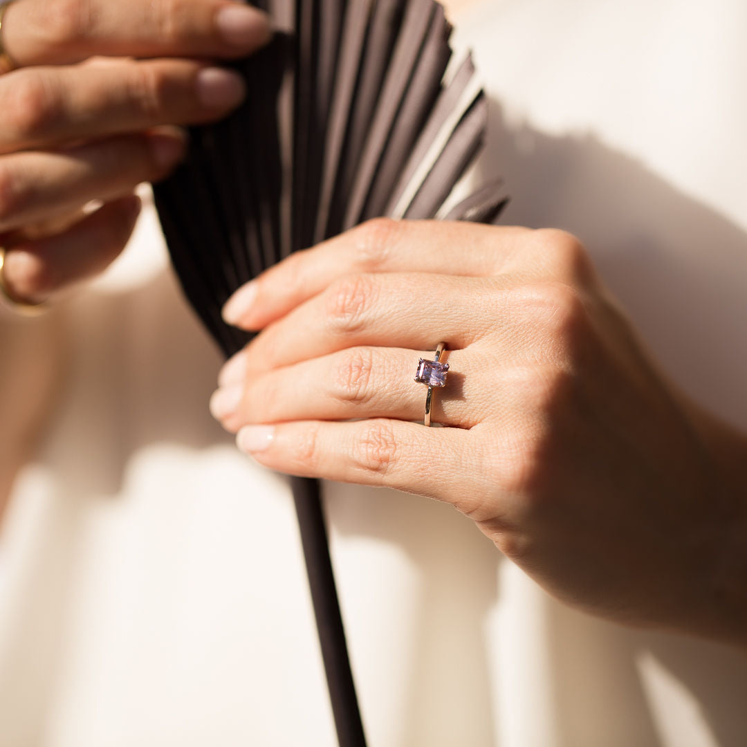 From Latin origin, Florence translates to flourishing, “to flower” or blossom. Meet our Florence, this 14k Australian White Gold and bright purplish-pink Australian Zircon ring.