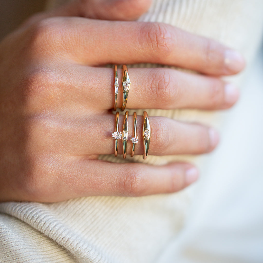 Introducing our capsule collection of delicate promise rings ~ whether it be the perfect gift to yourself, the gift to your lover, friend, sister, mother. The ring intended to cement your love and place keep until you later commission a Bespoke Engagement ring together. Or perhaps it is a ring of celebration- babies born, birthdays, anniversaries, milestones met.