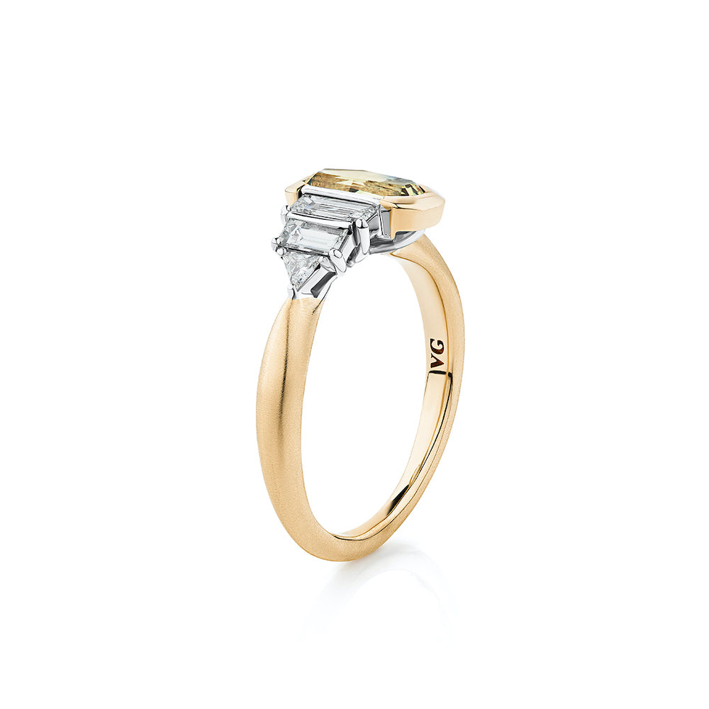 This unique 1.2ct Parti Sapphire is from Central Queensland is dominantly yellow in colour with a tiny hint of blue, making for a soft colour play with some interesting naturally occurring blue silk stripes.