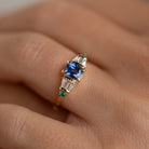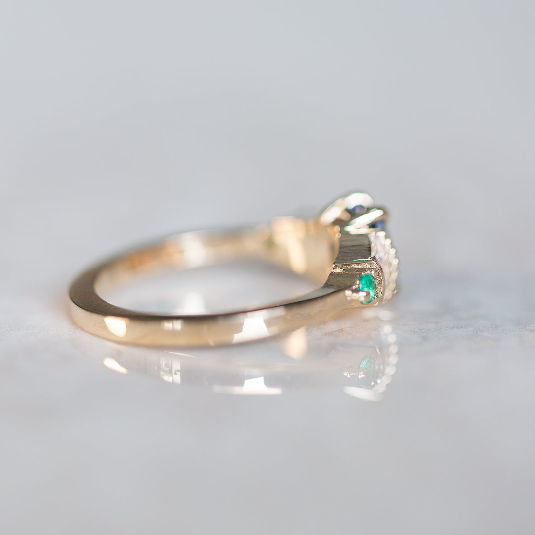 Australian Blue Sapphire, White Diamonds & Green Emeralds.