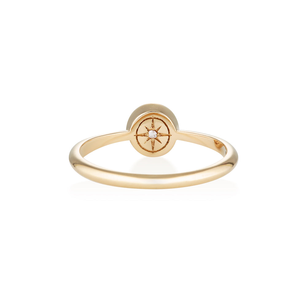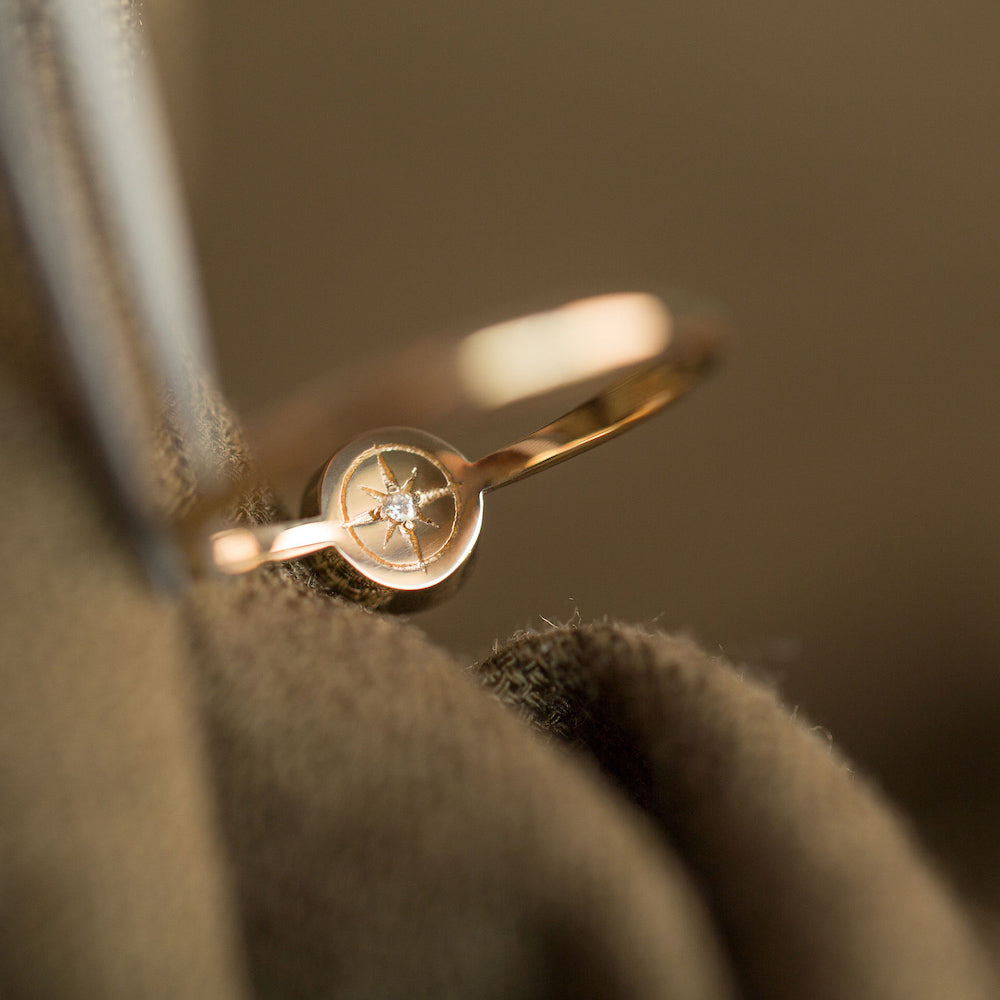 The compass and her symbolism etched inside the shank and the stone in direct contact with your skin. She whispers ‘always follow your own internal compass’.