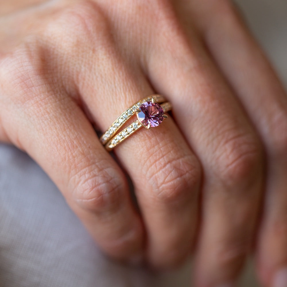 Our gently rolling Violet Gray Infinity Band is perfect for stacking or to be worn solo.