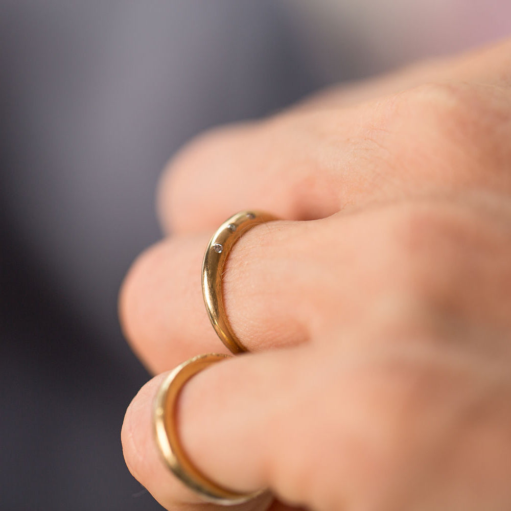 This rounded ring profile makes her feel soft to wear, her curves mould with yours and *she very quickly begins to feel a part of you. Wear the stones facing towards yourself to be reminded of that which you attach to them.
