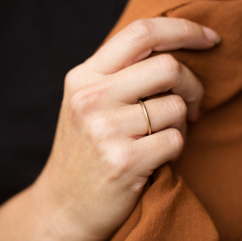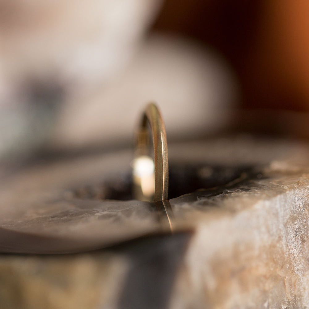 ZION. Our curved knife edge golden band.