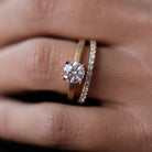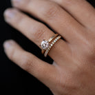 Your Diamond of choice will be secured in a 4 claw, minimal basket setting and set low into one of our most favourite angular shaped bands. The subtle sweeping shoulders (on the band) allow enough height for Giselle to be teamed with a straight or curved wedding band if chosen.